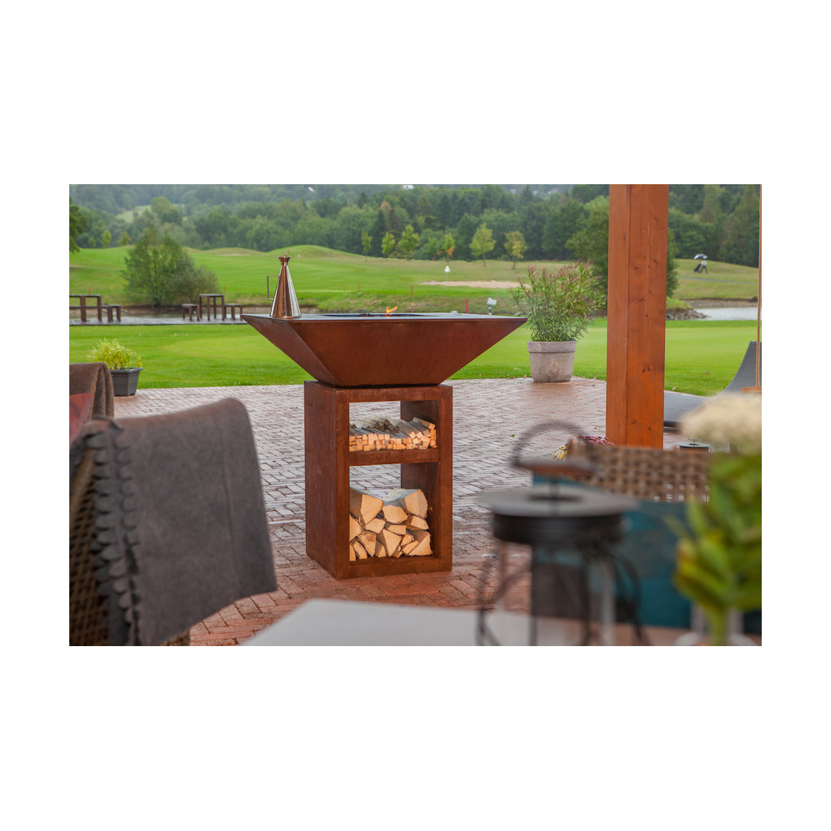 Le griglie Vulcanus hanno un design unico protetto da brevetto. Il corpo delle griglie è realizzato in acciaio COR-TEN patinato, che ha una lunga durata e può resistere a qualsiasi condizione esterna. È inoltre munito di nucleo di accumulo in ceramica per una migliore circolazione dell'aria calda, stabilità termica e consumo ridotto di legna. Quindi, se vivi in zone più fredde o grigli tutto l'anno, questa è la scelta giusta.