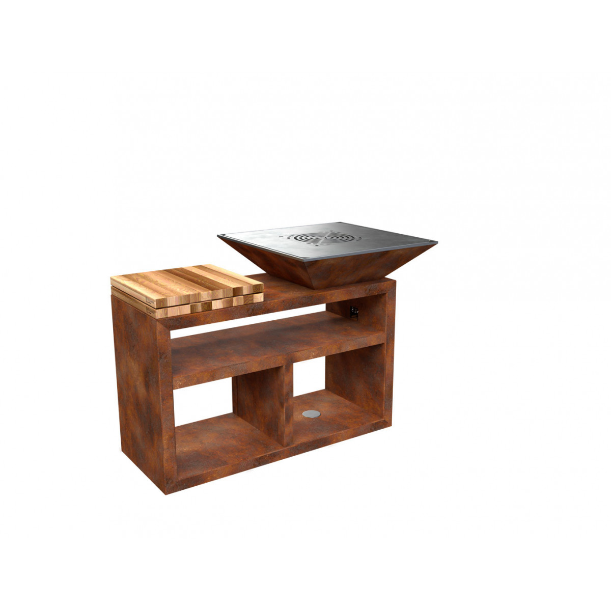 Rimuovendo la griglia rotonda centrale, é possibile posizionare una pentola nell’apertura, per cucinare sensazionali spezzatini.