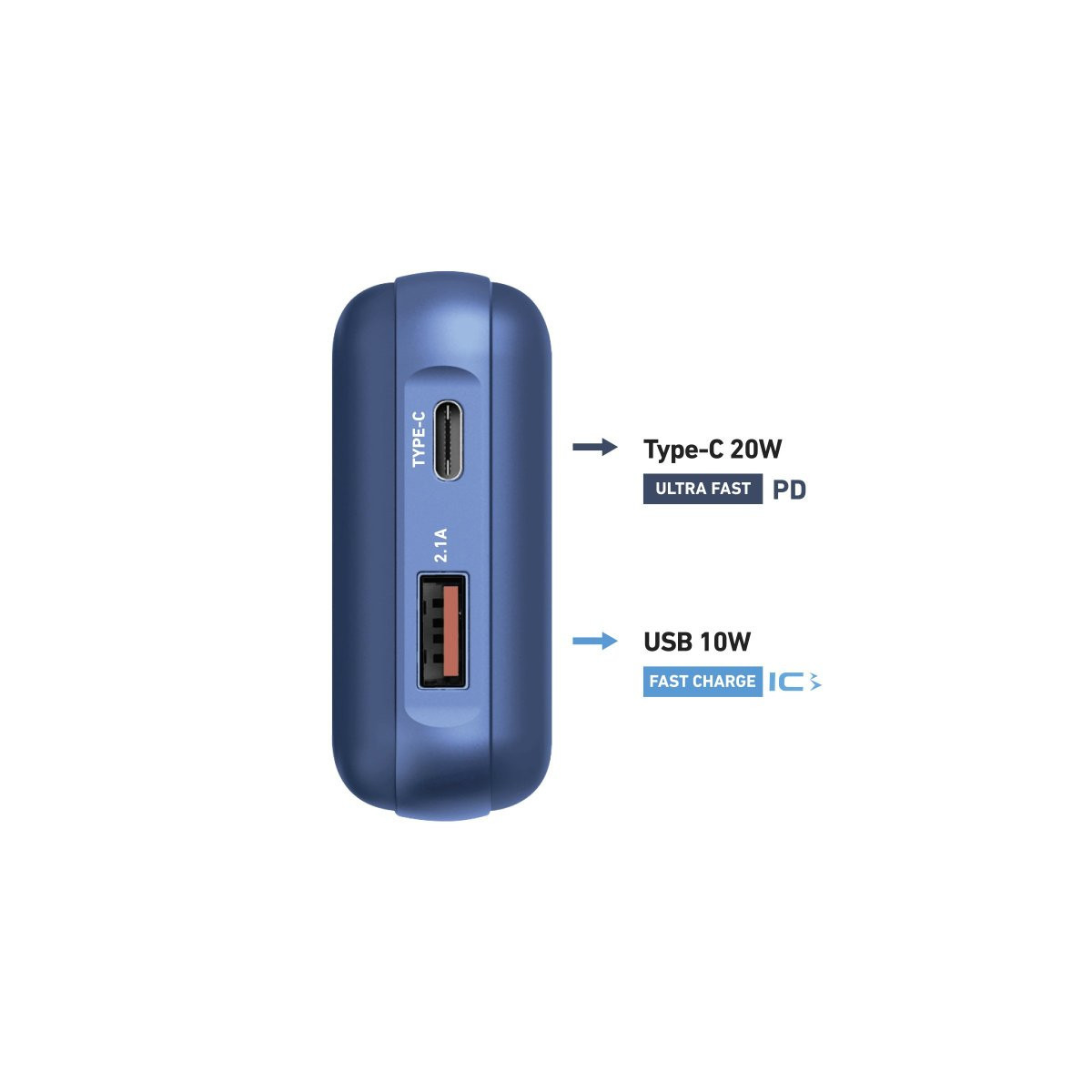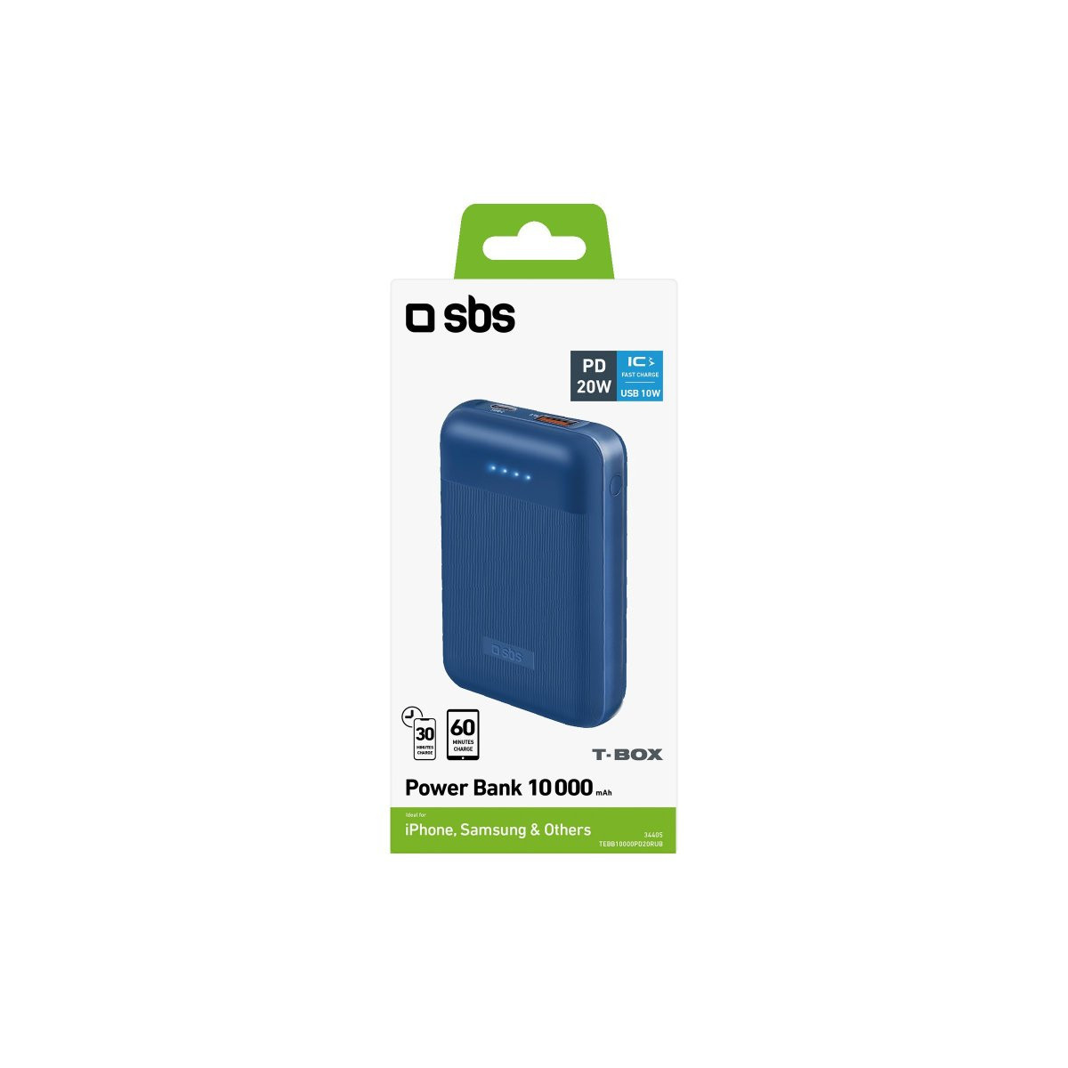 SBS TEBB10000PD20RUB. Capacità della batteria: 10000 mAh, Tecnologia batteria: Polimeri di litio (LiPo). Porte di uscita USB A: 1, Quantità di porte USB Tipo C: 1. Colore del prodotto: Blu