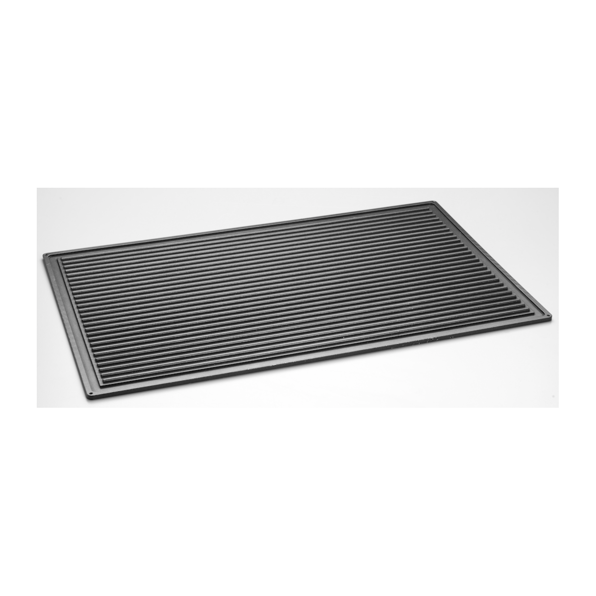 La parte alta presenta rigature in rilievo per grigliare bistecche, verdure e pesce. Il retro, essendo liscio, permette un appoggio ed una trasmissione termica ottimale per pizze surgelate o fresche. Lunghezza 530 mm e Profondità 325 mm