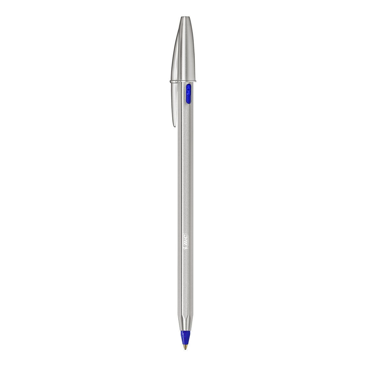La nuova BIC Cristal Re'New è un prodotto premium, progettato per garantire semplicità e funzionalità senza rinunciare al design classico amato in tutto il mondo. Questa penna col fusto in metallo color argento matto ha una punta media da 1,0 mm (linea di 0,32 mm), che scorre sulla pagina comodamente e senza sbavare.