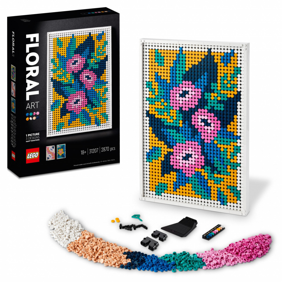 Liberate la vostra creatività botanica con il kit di costruzioni LEGO Art Motivi floreali (31207) 3 in 1 da appendere alla parete. Un progetto entusiasmante di arte floreale con 3 diverse decorazioni murali da realizzare e migliaia di possibilità di personalizzazione.