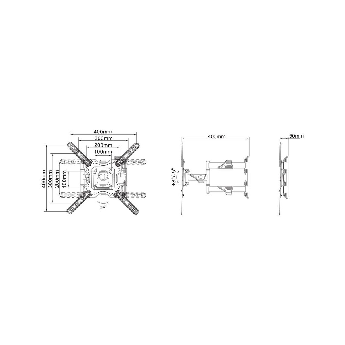Multibrackets 0839. Peso massimo (capacità): 20 kg, Capienza minima dimensioni dello schermo: 81,3 cm (32"), Capienza massima dimensioni dello schermo: 139,7 cm (55"), Compatibilità interfaccia di montaggio (min): 100 x 100 mm, Compatibilità interfaccia di montaggio (max): 400 x 400 mm. Inclinazione: -5 - 8°, Distanza dalla parete (min): 5 cm, Distanza dal muro (massima): 40 cm. Colore del prodotto: Nero