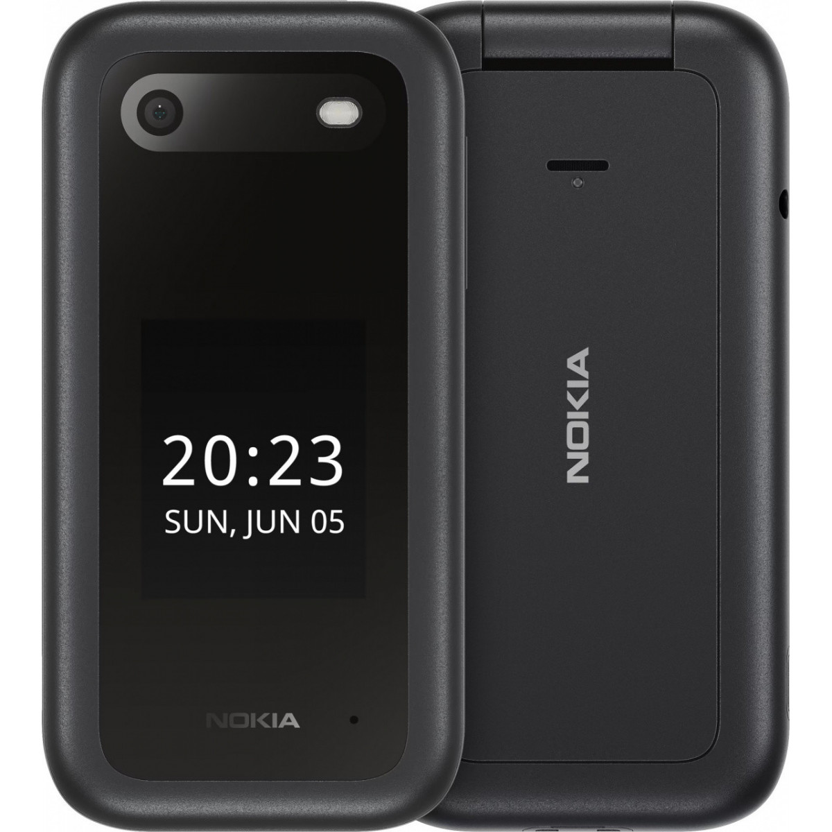 Nokia 2660 Flip. Fattore di forma: Clamshell. Capacità della scheda SIM: Doppia SIM. Dimensioni schermo: 7,37 cm (2.9"), Display esterno. Risoluzione fotocamera posteriore (numerico): 0,3 MP. Bluetooth. Radio FM. Capacità della batteria: 1450 mAh, Autonomia in standby (2G): 20,1 h. Peso: 123 g. Colore del prodotto: Nero