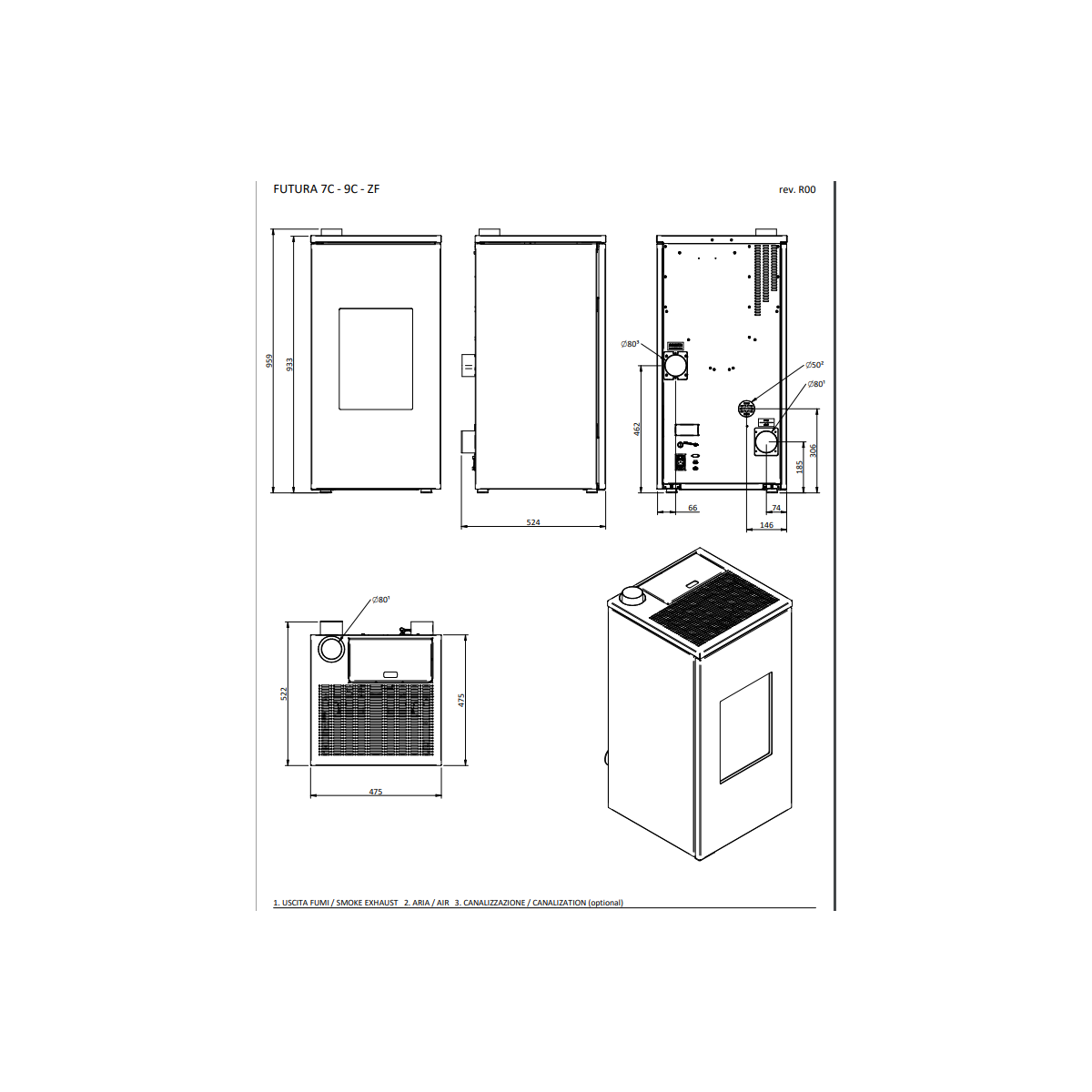 Futura, di nome e di fatto. Il design pulito e lineare di questa nuova gamma di stufe, completato dalla presenza di una doppia porta, è reso ancora più innovativo dalla ventilazione superiore e dall’assenza di un vero display. Le stufe Futura, infatti, sono programmate e gestite da un radiocomando touch in grado di interagire fino a una distanza di 60 metri. La possibilità di avere l’uscita fumi superiore, rende queste stufe versatili e adatte anche agli spazi più piccoli, senza sacrificare la grande capacità del serbatoio del pellet. Le stufe Futura, grazie alle loro caratteristiche, sono ecologiche e conformi al regolamento Ecodesign 2022.