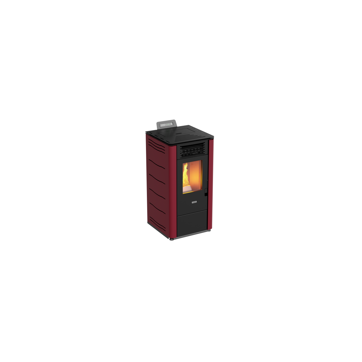 Foco Basic Steel - Stufa a Pellet, Modello 8, 6,9 kw, Vetro Piccolo, Bordeaux