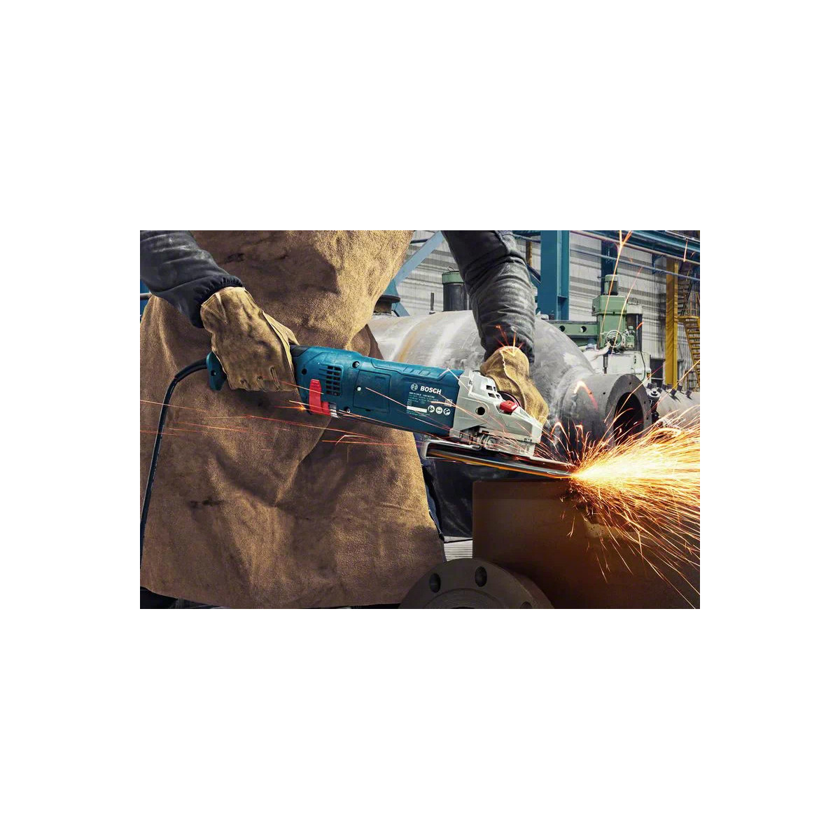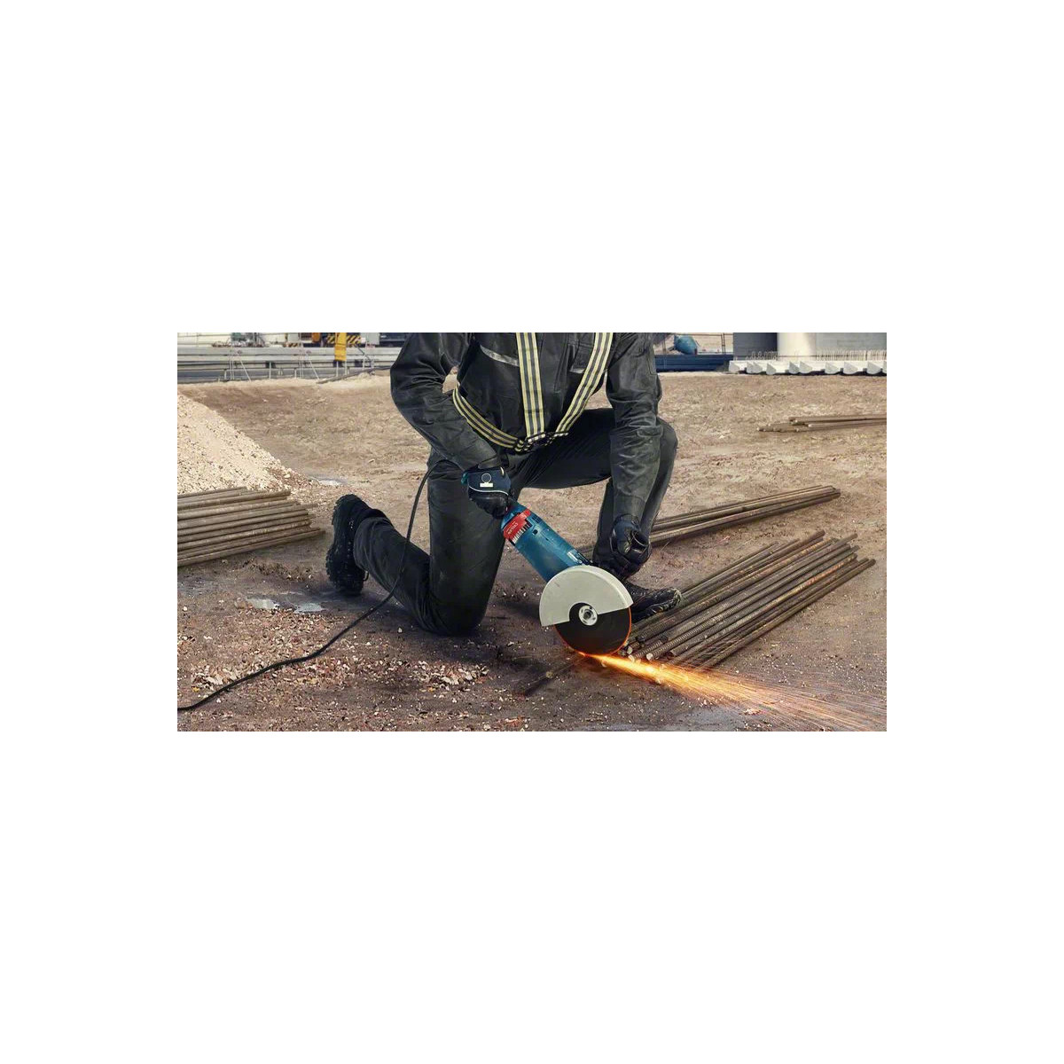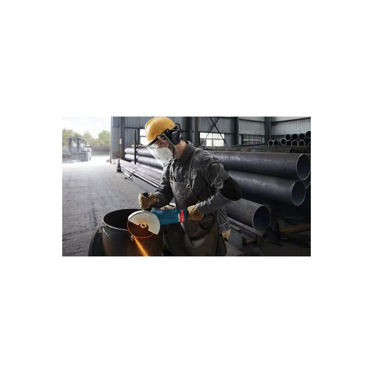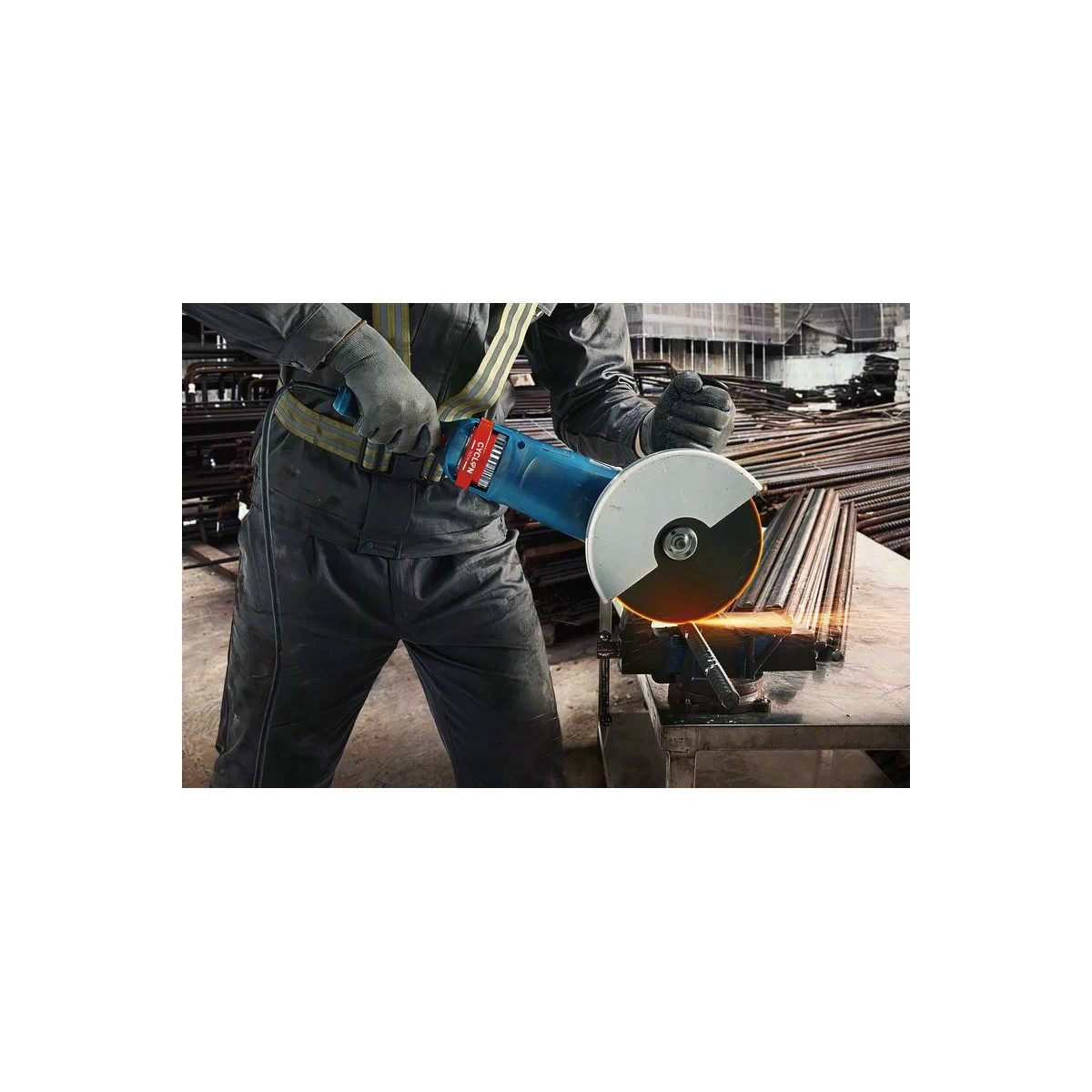 Questa smerigliatrice angolare offre un taglio e una smerigliatura potenti di diversi materiali tra cui metallo, cemento e pietra.