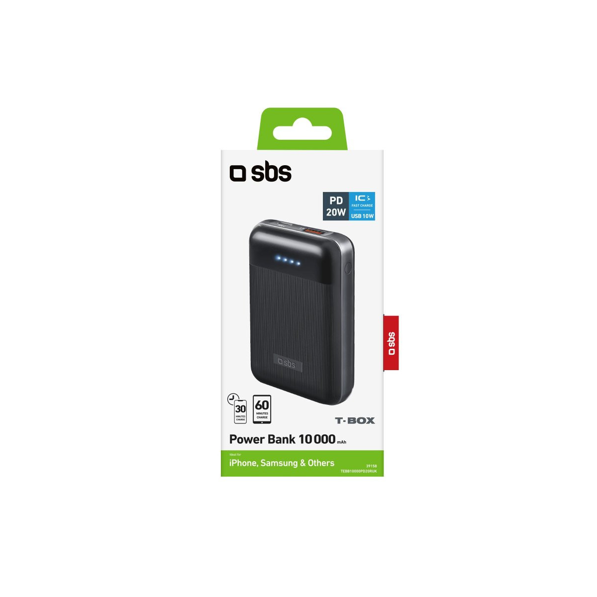 SBS TEBB10000PD20RUK. Capacità della batteria: 10000 mAh, Tecnologia batteria: Polimeri di litio (LiPo). Porte di uscita USB A: 1, Quantità di porte USB Tipo C: 1. Colore del prodotto: Nero