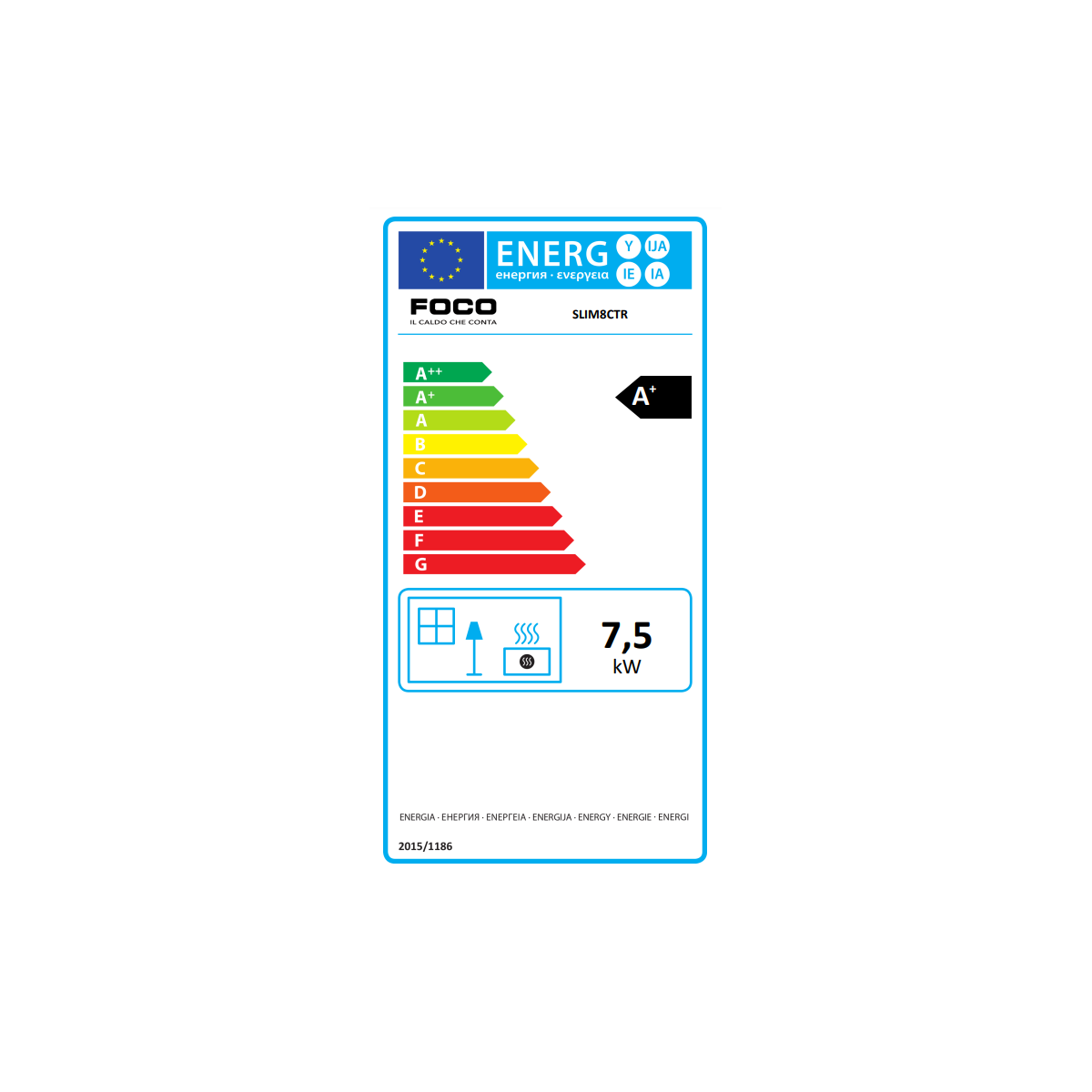 Foco Slim - Stufa a Pellet, Canalizzata, Modello 8C, 8,02 kw, Grigio Puntiato