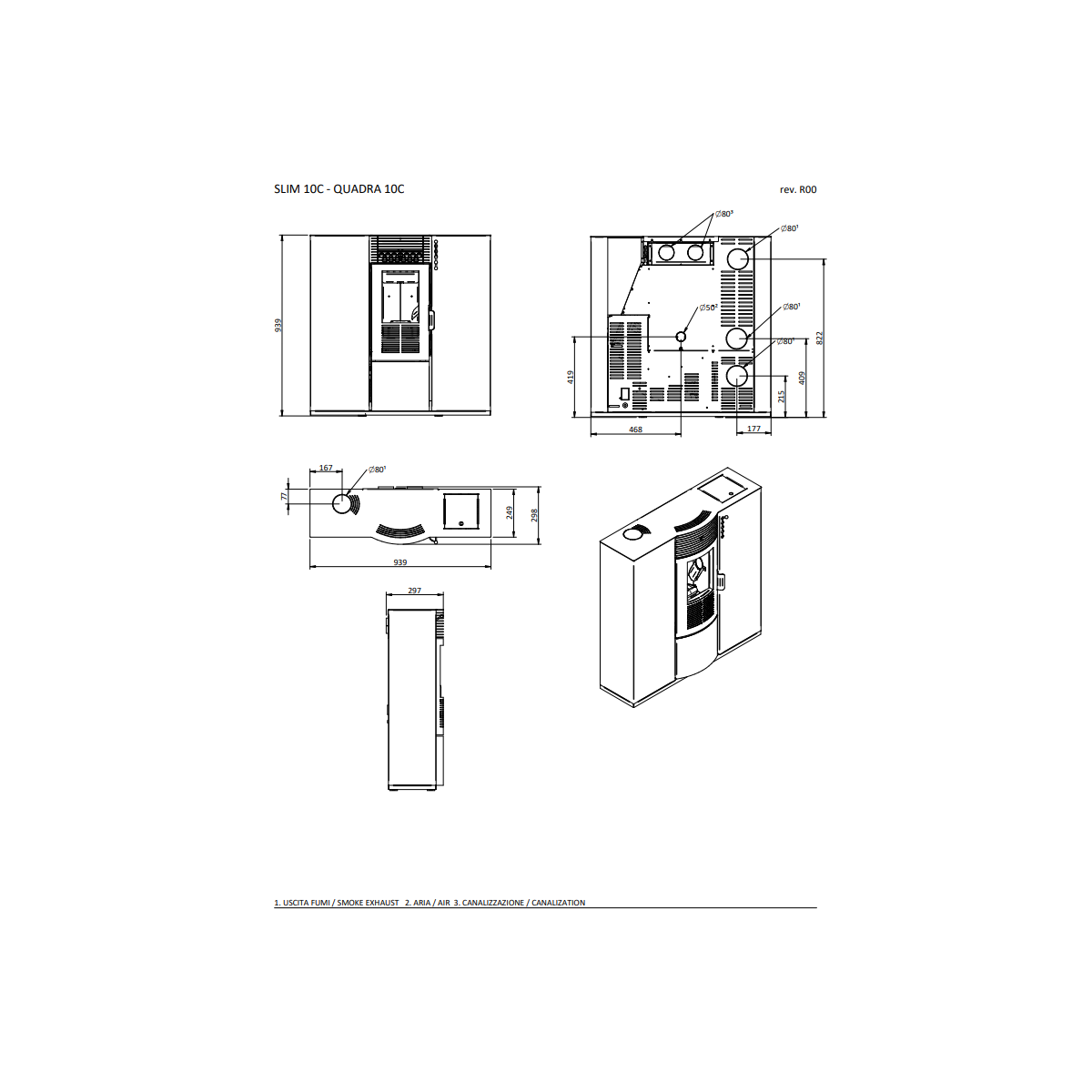 - Uscita fumi superiore o posteriore