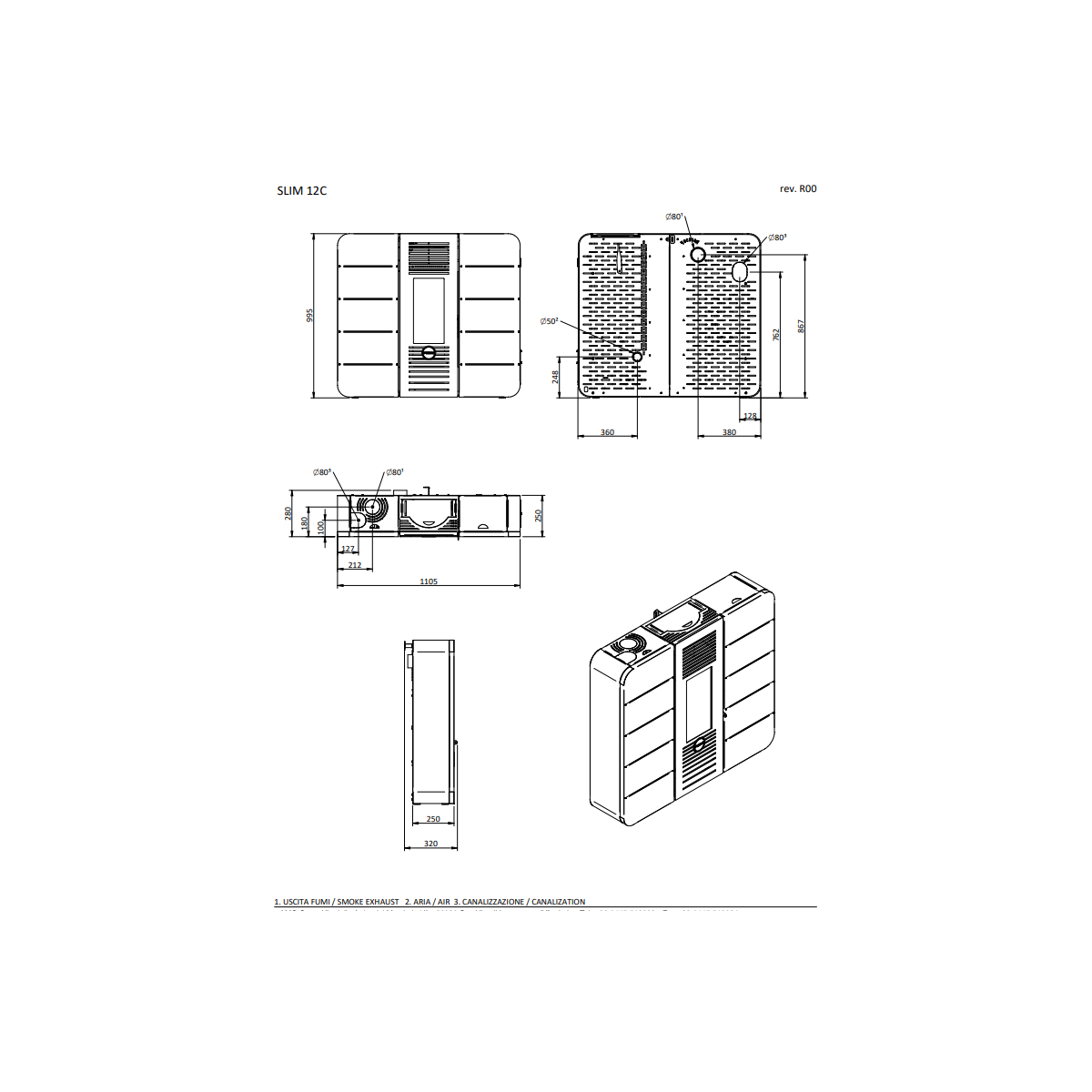 La stufa Salvaspazio è caratterizzata da una profondità ridotta (25,9 cm). Tutti i modelli includono la possibilità di incanalare l’aria verso una (Mod. 8C – Mod.12C) o due (Mod.10C) stanze comunicanti. La camera di combustione è in acciaio (Mod. 8C – Mod.10C) e vermiculite (Mod.12C).