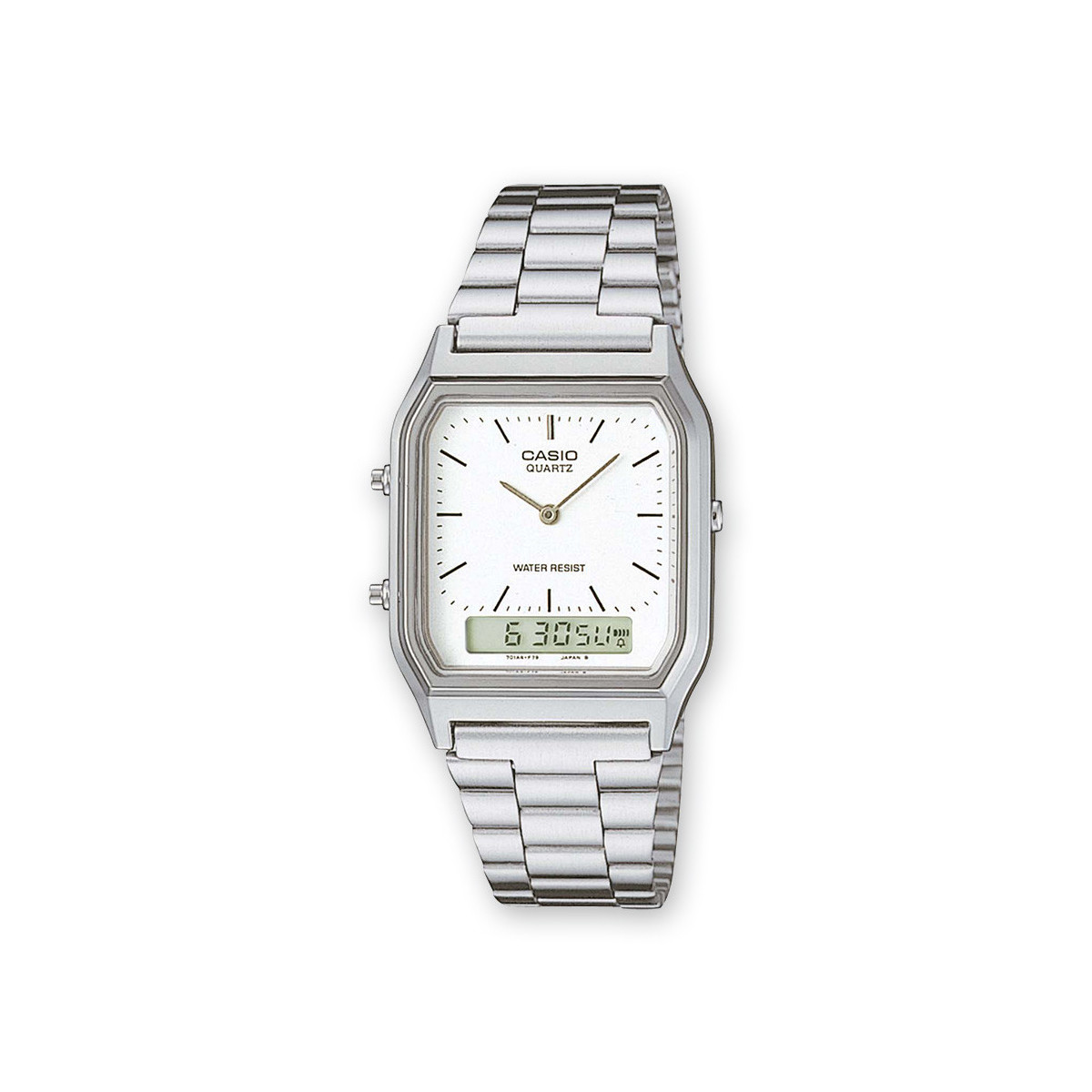 Casio AQ-230A-7DMQYES. Genere: Unisex, Materiale cassa: Resina, Colore struttura: Argento. Tipo batteria: SR920W, Durata batteria: 3 anno/i. Larghezza: 27,8 mm, Profondità: 8,1 mm, Altezza: 38,8 mm