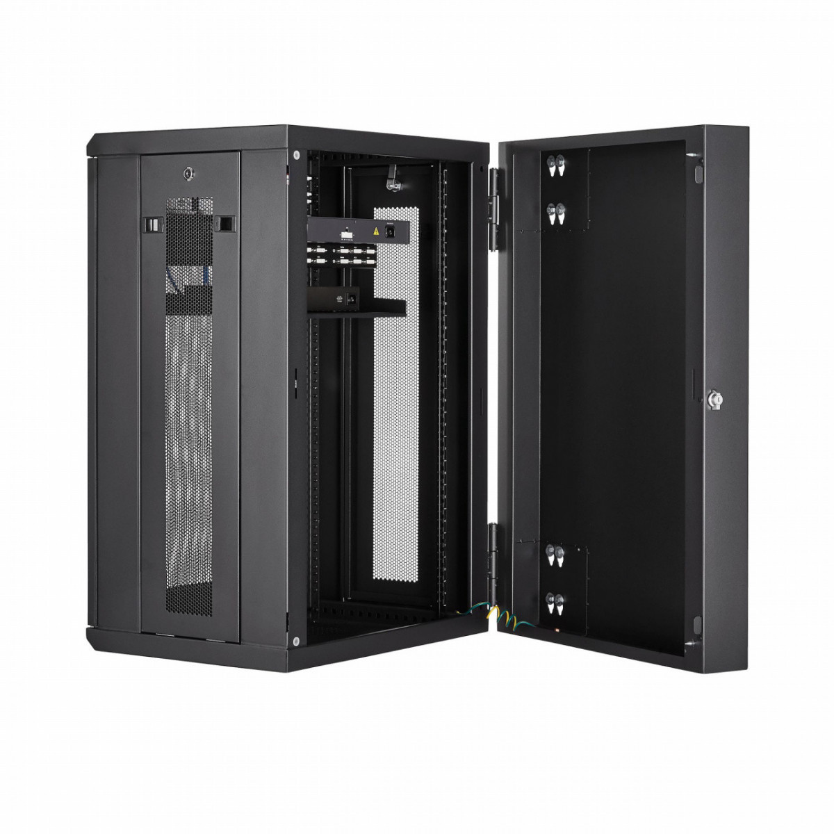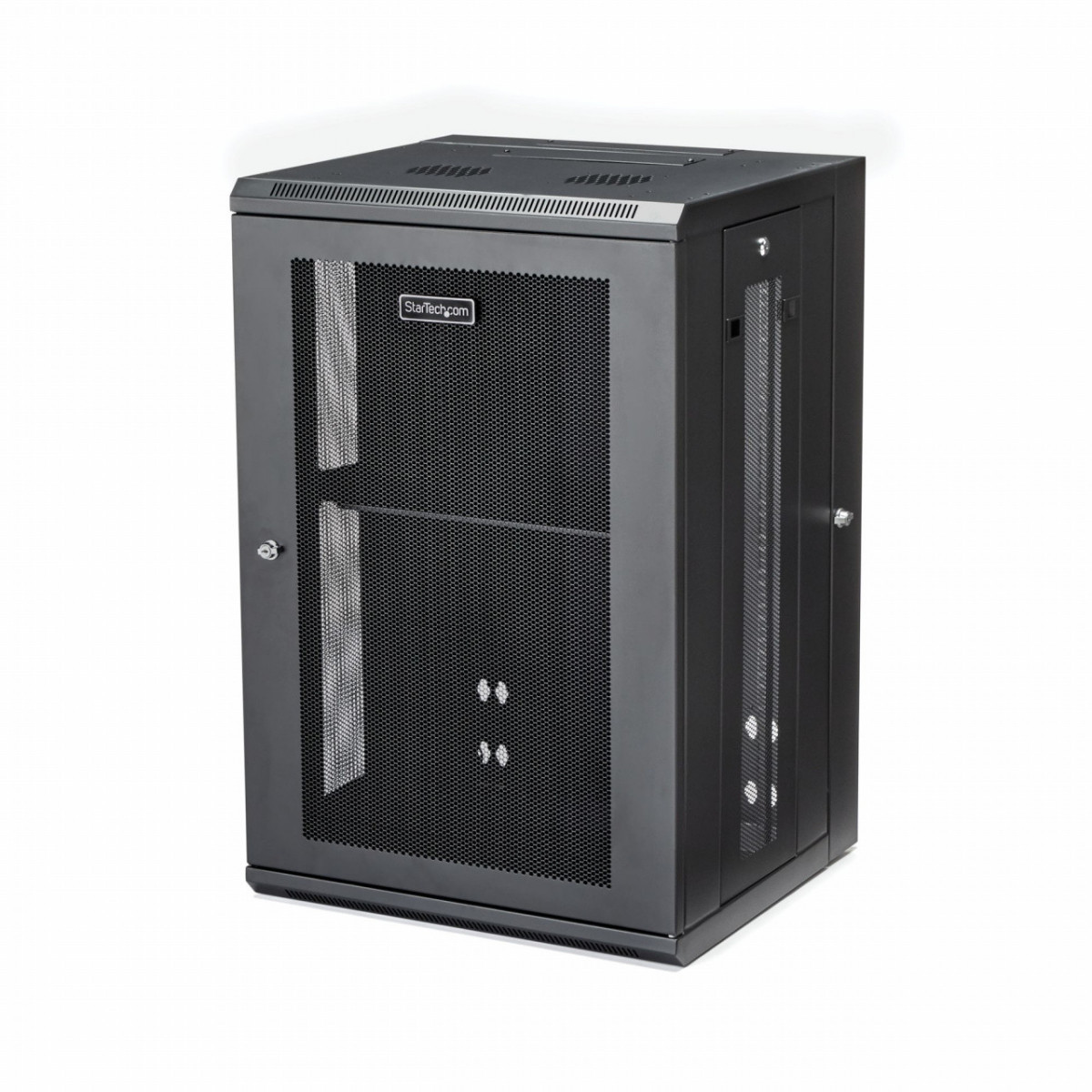 StarTech.com Armadio per Server Rack Montabile a Parete 18U - Armadio a Cerniera fino a 20" (50cm) di profondità. Tipo: Da parete, Capacità di rack: 18U, Peso massimo (capacità): 90 kg. Peso: 67,7 kg. Colore del prodotto: Nero