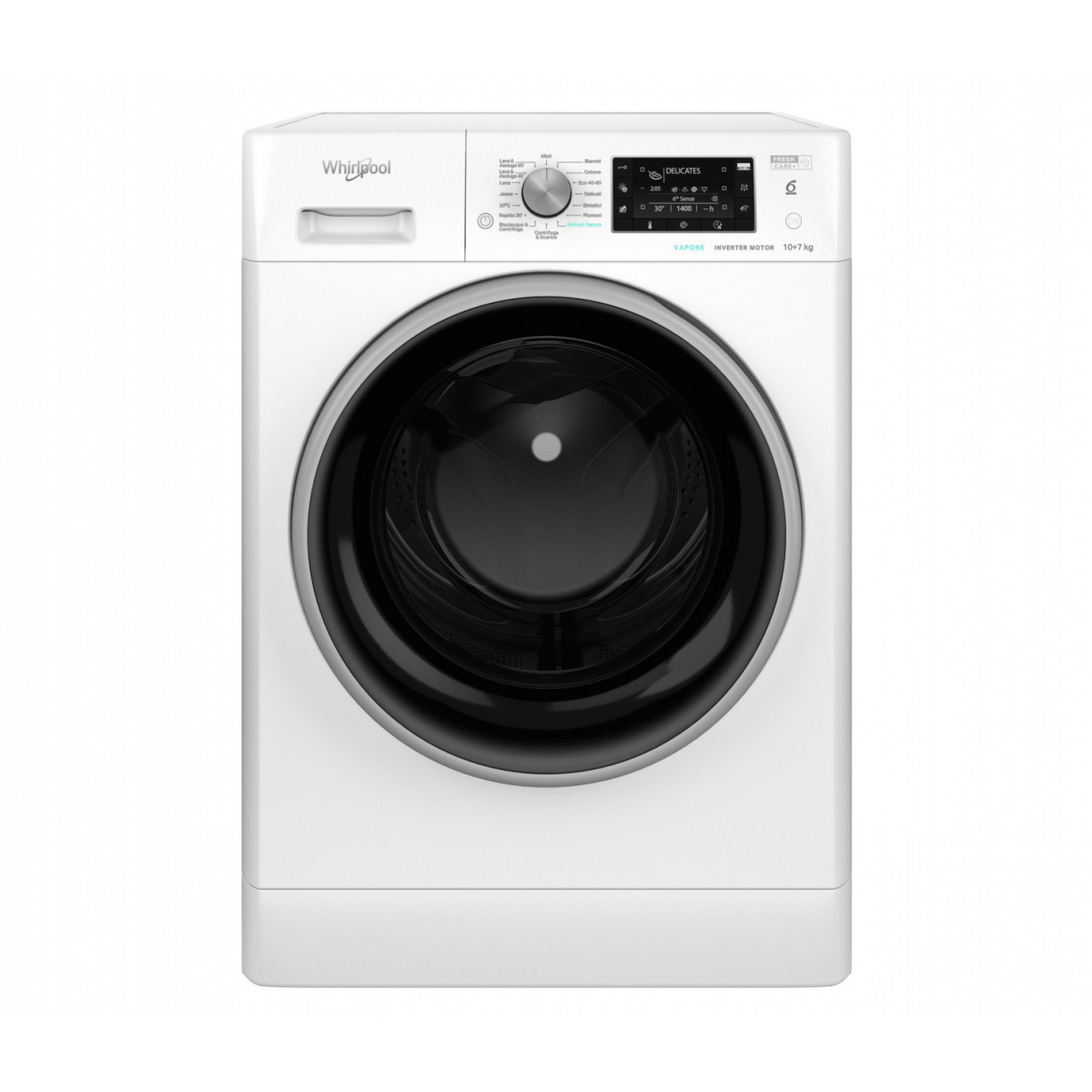 Whirlpool FFWDD 107625 WBS IT - Lavasciuga, 6° Senso, SteamCare, 7+10 Kg, 1600 Giri, Inverter, Classe E