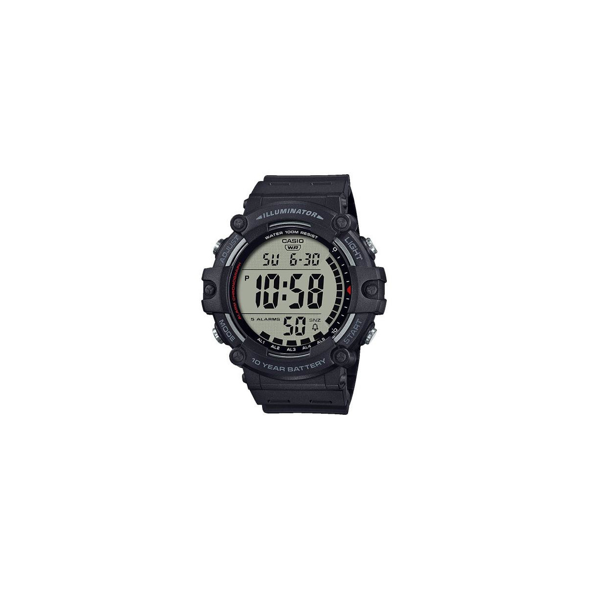 Casio AE-1500WH-1AVEF. Materiale cassa: Resina, Colore struttura: Nero, Colore principale della cassa: Nero. Durata batteria: 10 anno/i. Larghezza: 51,2 mm, Profondità: 15,7 mm, Altezza: 54,4 mm