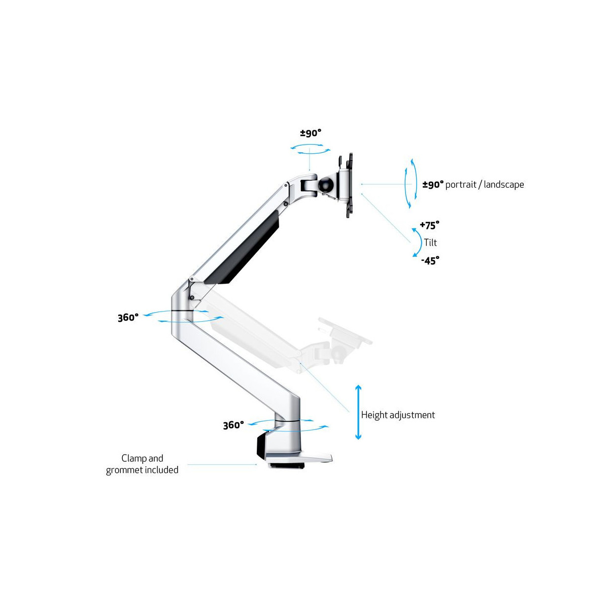 Multibrackets 7167. Montaggio: Morsa, Peso massimo (capacità): 10 kg, Capienza minima dimensioni dello schermo: 38,1 cm (15"), Capienza massima dimensioni dello schermo: 81,3 cm (32"), Compatibilità interfaccia di montaggio (min): 75 x 75 mm, Compatibilità interfaccia di montaggio (max): 100 x 100 mm. Regolazione altezza, Inclinazione: -45 - 75°. Colore del prodotto: Argento