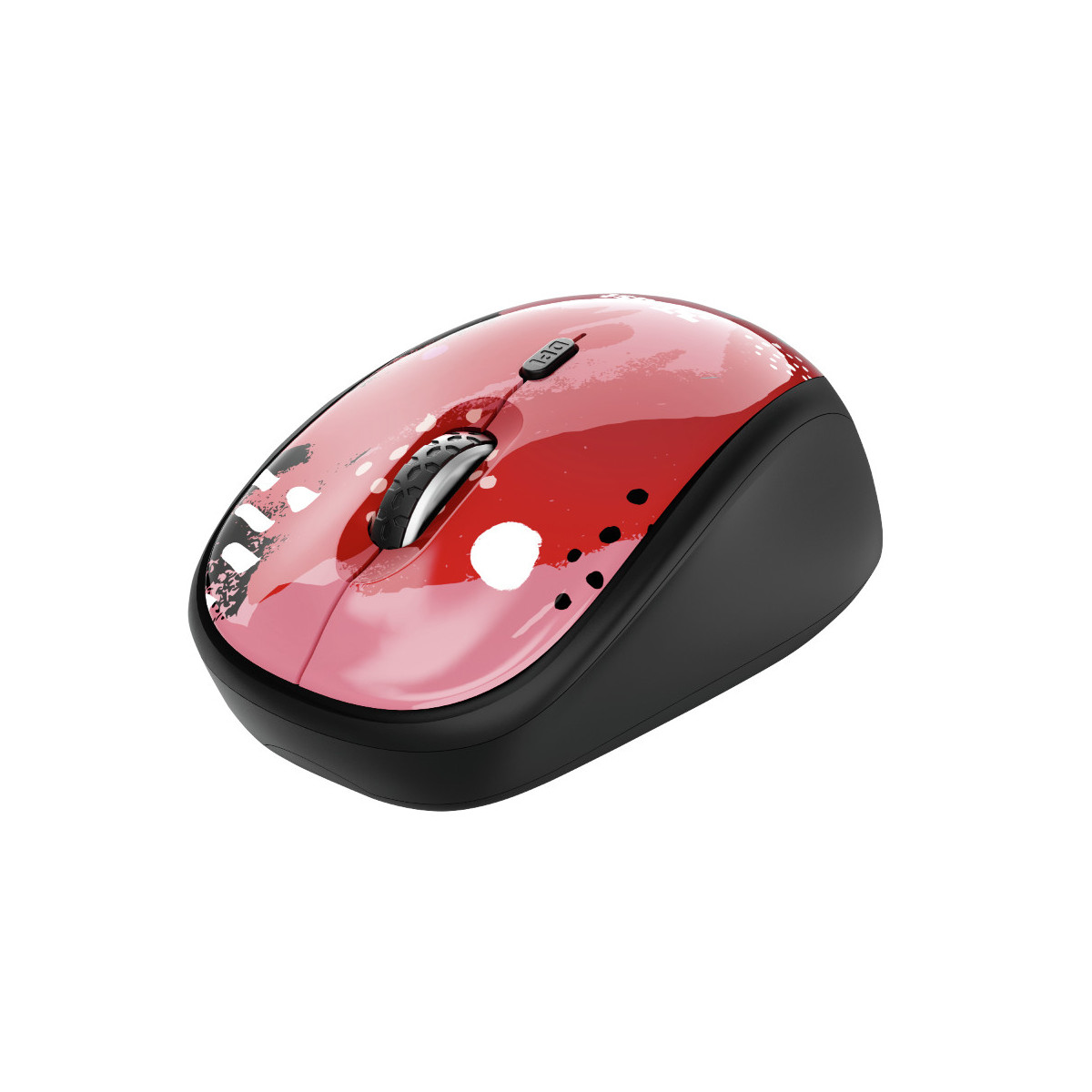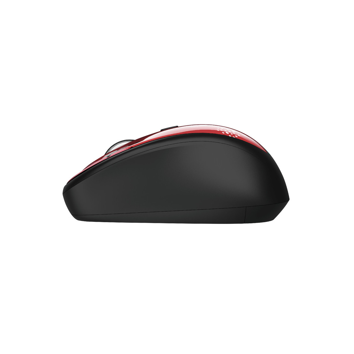 Trust Yvi. Fattore di forma: Mano destra. Tecnologia di rilevamento del movimento: Ottico, Interfaccia dispositivo: RF Wireless, Risoluzione movimento: 1600 DPI, Tipo di pulsanti: Tasti premuti, Numero di tasti: 4, Tipo di scorimmento: Rotella. Alimentazione: Batterie. Colore del prodotto: Nero, Rosso