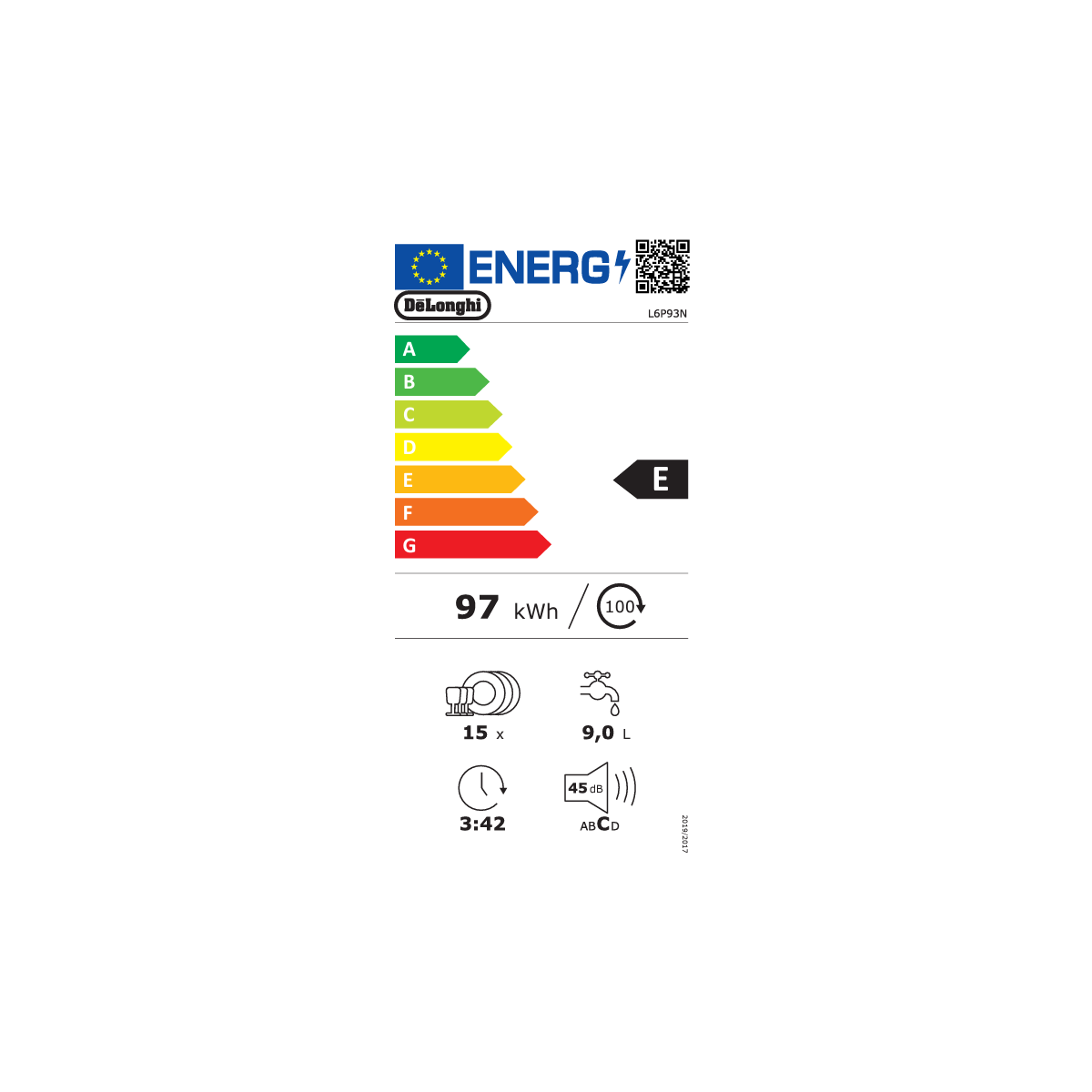 De Longhi L6P93N - Lavastoviglie da Incasso a Scomparsa Totale, 15 Coperti, 9 Programmi, Classe E