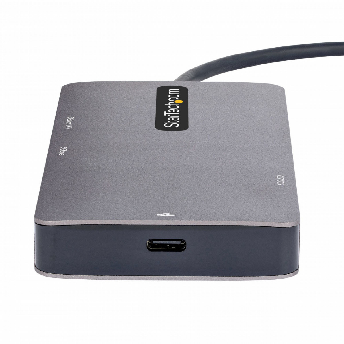Docking Station portatile | Fino a doppio 4K 60Hz | GbE | Lettori di schede SD e MicroSD | Compatibile con Thunderbolt™ 3 e 4Questo adattatore USB Type-C multiporta con DP 1.4 Alternative Mode, DSC e MST, supporta video dual-HDMI® (HDR) con risoluzioni fino a 4K 60Hz non compresso. Il mini dock da viaggio permette di trasformare i dispositivi Dell XPS, Lenovo X1 Carbon, HP Elite/ProBook o altri laptop USB-C in una workstation, ovunque ci si trovi. La docking station USB-C offre due uscite HDMI, un hub USB 3.2 Gen 1 Type-A (5 Gbps) a 2 porte, compresa una porta BC 1.2 per alimentare e ricaricare una periferica USB, lettori di schede SD e MicroSD e una porta Gigabit Ethernet, il tutto tramite una connessione alla porta USB-C o Thunderbolt™ 3 o 4 del laptop. Inoltre, offre ricarica avanzata tramite USB Power Delivery (PD) 3.0 pass-through mediante un cavo host USB-C integrato da 30 cm, per una maggiore flessibilità di configurazione.Video Dual-HDMI ad Alte Prestazioni tramite MSTLa docking station compatta collega il laptop a due monitor HDMI, creando una potente stazione di lavoro. Supporta DP 1.4 Alt Mode con DSC e MST, per prestazioni video non compresse fino al doppio 4K (3840 x 2160p) a 60Hz, a seconda del computer host. Il dock supporta inoltre l'uso di monitor ultrawide.Le prestazioni video, come la risoluzione e la frequenza di aggiornamento su entrambi i monitor, dipendono dal computer host e dal suo controller video. È necessario disporre di un dispositivo sorgente con supporto per DisplayPort 1.4, abbinato a display HDMI abilitati DSC e DP 1.4, per ottenere un doppio 4K 60Hz. Verificare le specifiche del computer e dei display per valutare le prestazioni video previste. StarTech.com esegue rigorosi benchmark prestazionali con tutti i principali modelli di computer. I risultati delle prestazioni video dei nostri test sono elencati di seguito:Doppio DisplayComputer hostModelloMonitor #1Risoluzione massimaMonitor #2Risoluzione massimaLenovo X1 Carbon G93840x2160@60Hz3840x2160@60HzHP EliteBook 850 G83840x2160@60Hz3840x2160@30HzDell XPS 93102560x1600@60Hz2560x1600@60HzDisplay singoloComputer hostModelloMonitorRisoluzione massimaDell XPS 93103840x2160@60HzLenovo X1C G93840x2160@60HzHP EliteBook 8503840x2160@60HzHP ProBook 450 G83840x2160@60HzLaptop Surface 33840x2160@60HzDell G5 SE (AMD)3840x2160@60HzConsente di collegare più dispositiviL'hub da USB-C a USB 3.2 Gen 1 (5 Gbps) fornisce due porte USB-A per collegare i dispositivi USB.Molteplici Possibilità di ImpiegoUna soluzione dock versatile da utilizzare nella postazione di lavoro in ufficio, a casa, in hotel o nella sala riunioni. È sufficientemente portatile da essere trasportato in borsa o nello zaino per l'uso in mobilità. Il dock USB-C può funzionare con la sola alimentazione da bus o con un adattatore di alimentazione USB-C collegato alla porta pass-through, per ricaricare completamente laptop e periferiche. La docking station leggera dispone di un cavo host USB-C integrato da 30 cm.Lettore per schede SD integratoConsente di accedere ai contenuti multimediali con facilità. L'adattatore multiporta assicura un accesso diretto alle schede di memoria SD / SDHC™ / SDXC™ o microSD (uSD).Consente di Ricaricare Laptop e PerifericheGrazie al supporto per USB PD 3.0 (fino a 100 W), l'adattatore USB Type-C multiporta consente di alimentare e ricaricare il laptop e una periferica USB, collegando un adattatore di alimentazione USB-C alla porta pass-through. PD 3.0 è dotato di Fast Role Swap (FRS) che impedisce l'interruzione dei dati USB quando si cambia fonte di alimentazione (ad esempio da adattatore di alimentazione USB-C ad alimentazione bus).Connettività di Rete AffidabileLa porta Gigabit Ethernet assicura un accesso affidabile alla rete cablata. Il supporto per WoL permette di avviare il computer host da una posizione remota.Consente di migliorare la produttività e la gestione dei dispositivi con l'applicazione StarTech.com Connectivity ToolsSviluppato per migliorare le prestazioni e la sicurezza, StarTech.com Connectivity Tools è l'unica suite software sul mercato in grado di funzionare con un'ampia gamma di accessori di connettività IT. La suite software comprende:-Utility avanzata di layout finestre: Per impostare e salvare layout di finestre personalizzati.-Utility pass-through indirizzo MAC: Per migliorare la sicurezza della rete.-Utility di monitoraggio degli eventi USB: Per tracciare e registrare i dispositivi USB collegati.-Utility di commutazione automatica Wi-Fi: Consente agli utenti di accedere rapidamente a velocità di rete più elevate tramite LAN cablata.Per ulteriori informazioni e per scaricare l'applicazione StarTech.com Connectivity Tools, visitare il sito: www.startech.com/connectivity-tools120B-USBC-MULTIPORT è coperto dalla garanzia di 3 anni StarTech.com e dal supporto tecnico multilingue gratuito a vita.The StarTech.com Advantage