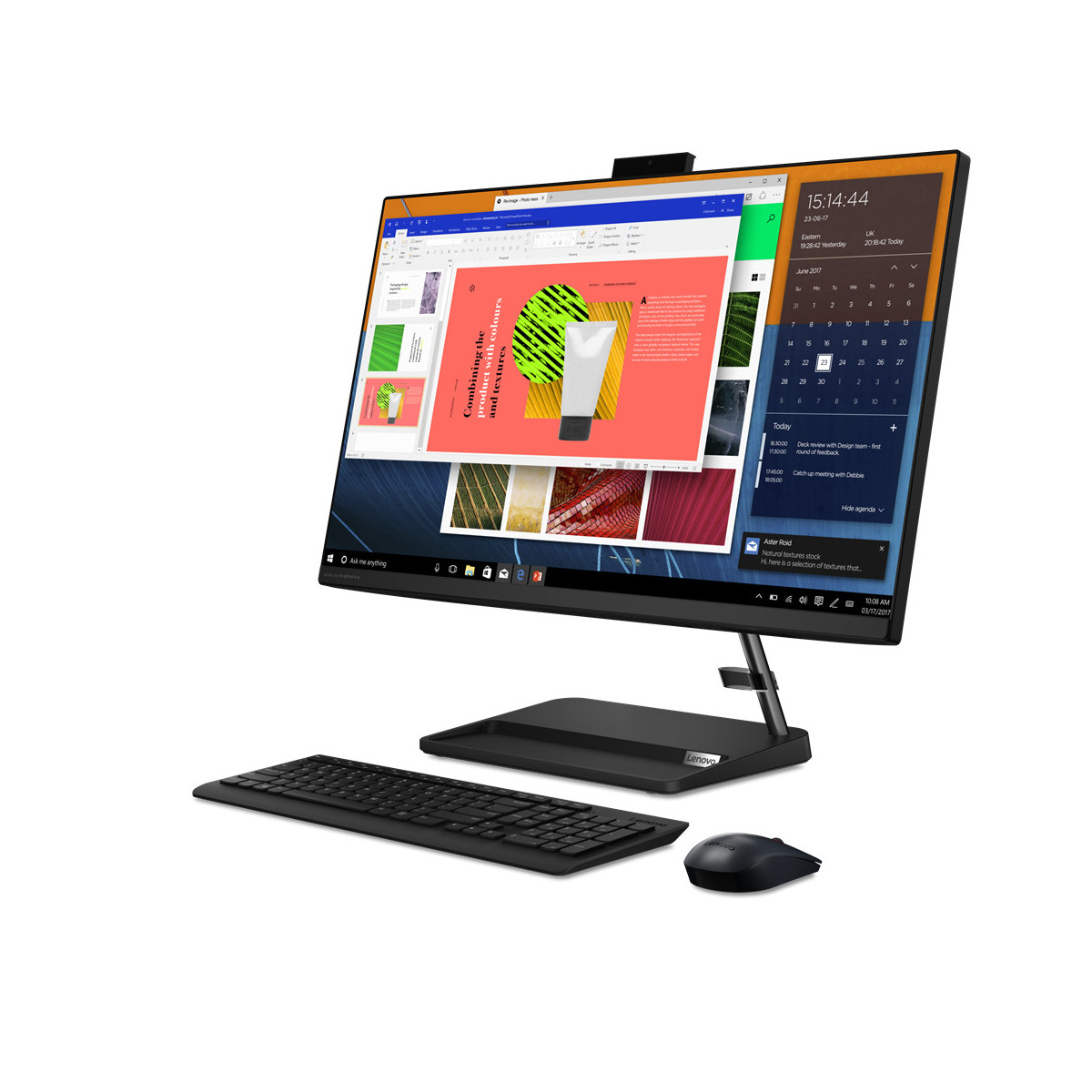 Lenovo IdeaCentre AIO 3 27ALC6. Tipo di prodotto: All-in-One workstation. Dimensioni schermo: 68,6 cm (27"), Tipologia HD: 5K Ultrawide HD, Risoluzione del display: 1920 x 1080 Pixel, Tipo di pannello: IPS. Famiglia processore: AMD Ryzen™ 5, Frequenza del processore: 2,1 GHz. RAM installata: 8 GB, Tipo di RAM: DDR4-SDRAM. Capacità totale di archiviazione: 512 GB, Supporto di memoria: SSD. Fotocamera integrata. Tipo drive ottico: DVD±RW. Sistema operativo incluso: Windows 11 Home. Colore del prodotto: Nero