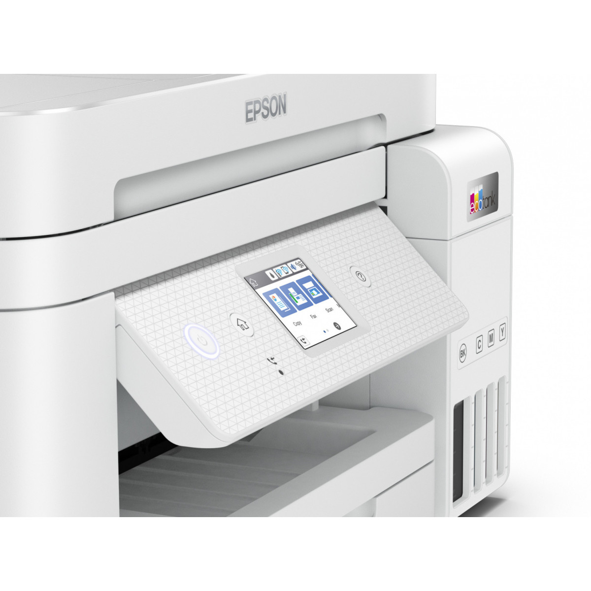 Epson EcoTank ET-4856. Tecnologia di stampa: Ad inchiostro, Stampa: Stampa a colori, Risoluzione massima: 4800 x 1200 DPI, Velocità di stampa (colore, qualità normale, A4/US Letter): 20 ppm. Copia: Copia a colori. Scansione: Scansione a colori, Risoluzione di scansione ottica: 1200 x 2400 DPI. Funzione duplex: Stampa. Massimo formato carta serie ISO A: A4. Wi-Fi. Stampa diretta. Colore del prodotto: Bianco