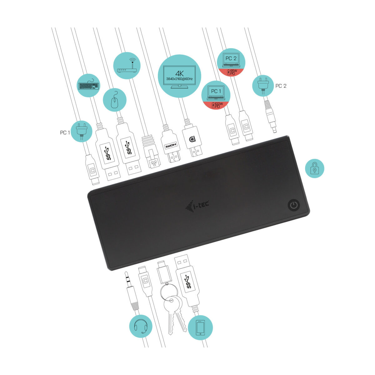 i-tec USB-C/Thunderbolt KVM Docking station Dual Display + Power Delivery 65/100W