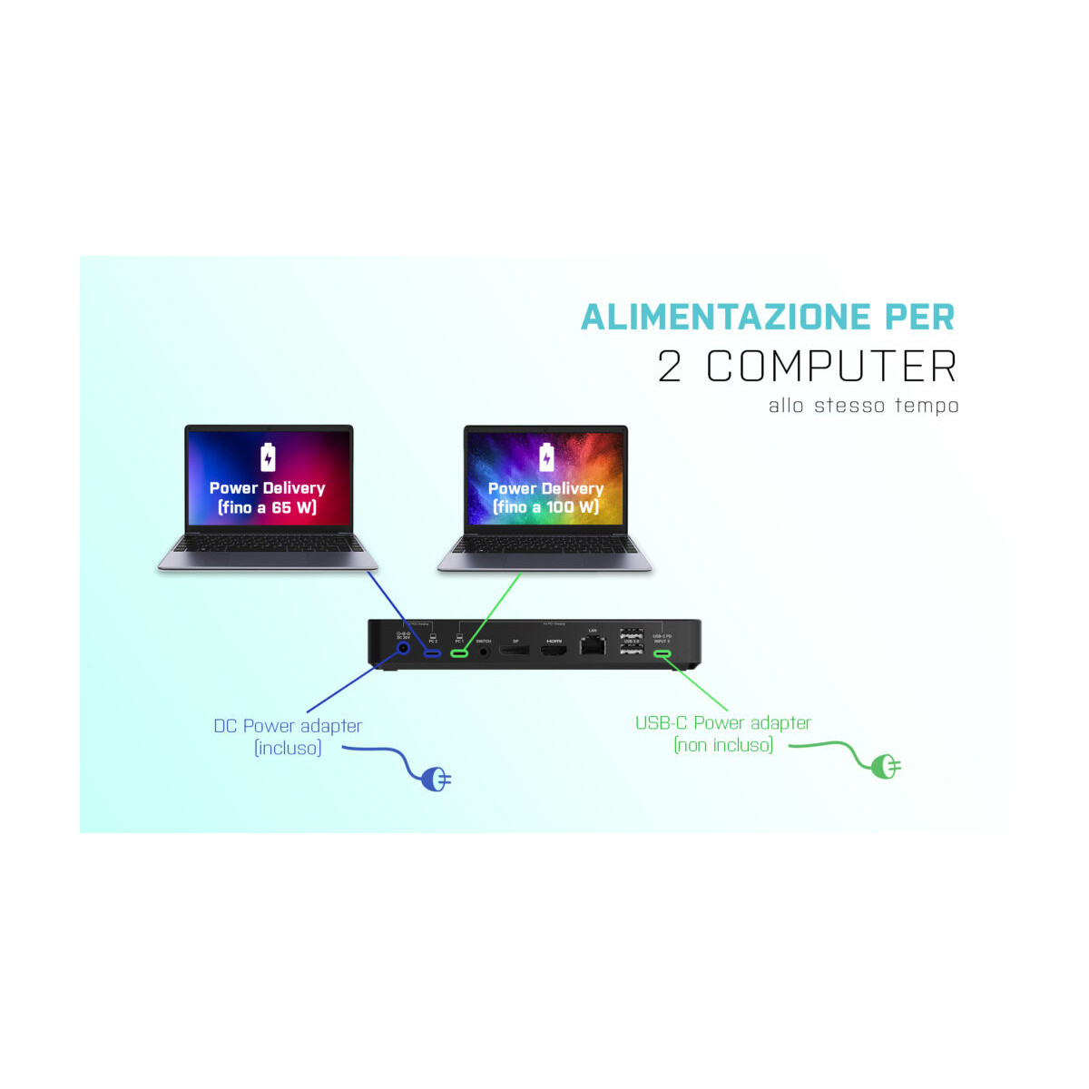 * Il collegamento di un alimentatore opzionale (non incluso) alla porta di alimentazione della docking station è necessario per alimentare il secondo computer