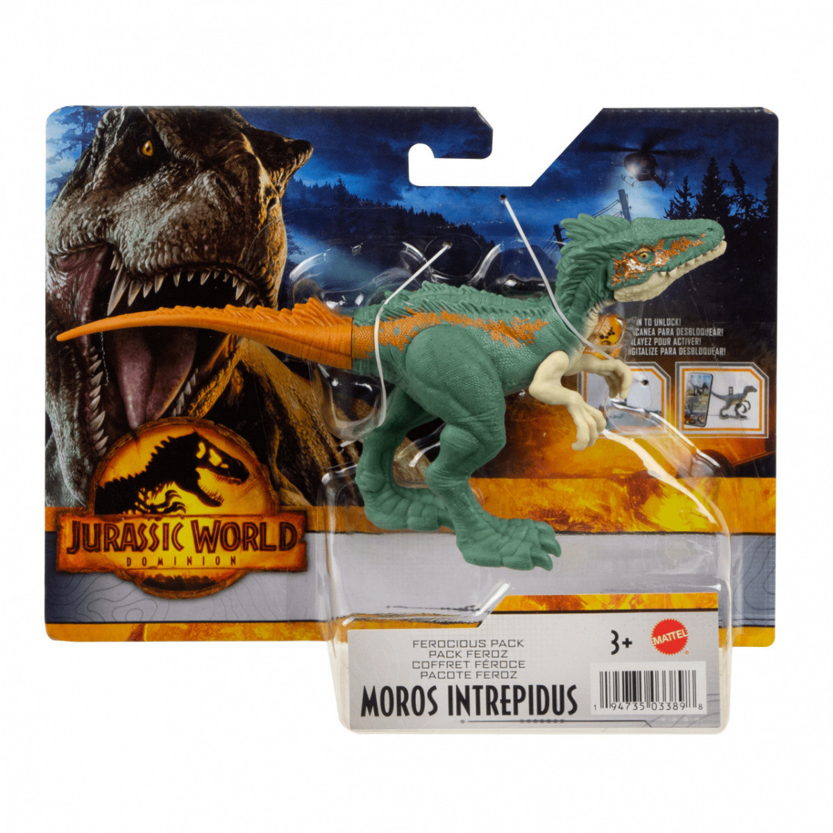 Jurassic World Ferocious Pack Assortment. Tipo di prodotto: Collectible action figure, Sulla base dei: Film e serie TV, Tema: Jurassic World. Larghezza imballo: 209,6 mm, Profondità imballo: 60,3 mm, Altezza imballo: 158,8 mm. Larghezza scatola principale: 225,4 mm, Lunghezza del cartone principale: 387,4 mm, Altezza scatola principale: 171,4 mm