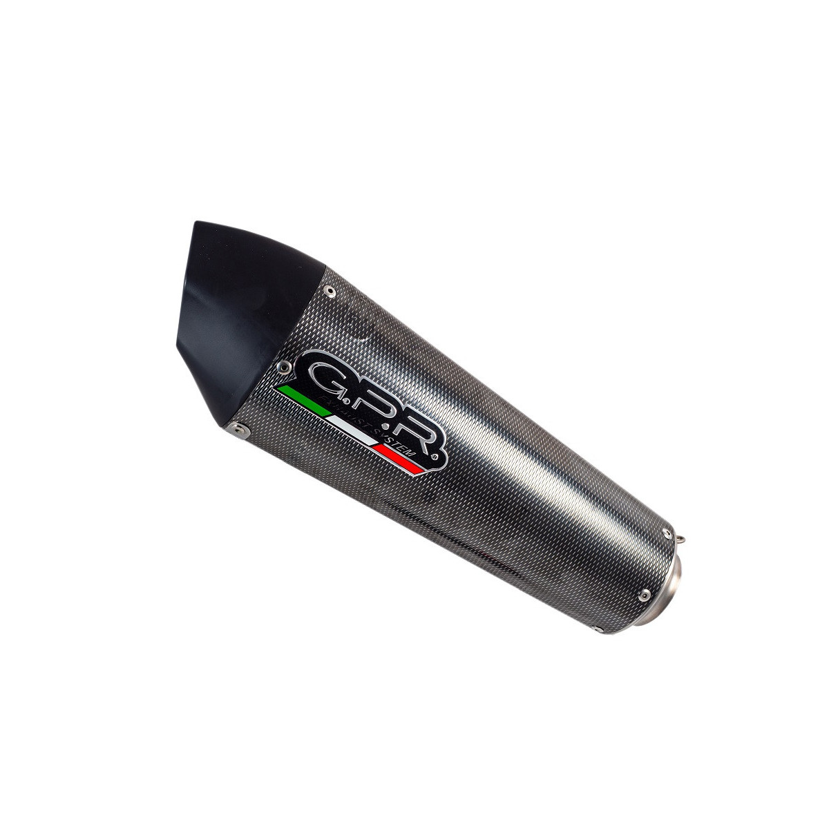Per l'installazione non sono necessarie modifiche strutturali alla moto per un uso del prodotto in versione omologata. Lo scarico ha un dbkiller rimovibile (limitatore di rumore) per uso agonistico, rimuovere il dbkiller non è SOLO illegale, ma il cliente si assume la responsabilità di utilizzare la moto come solo sui circuiti, senza borse, senza frecce e porta targa o altro parti che entrerebbero in conflitto con il diverso angolo del gas a seguito della trasformazione nella versione da corsa. L'abuso di questa situazione sulla strada comporterà la perdita della garanzia del prodotto e qualsiasi richiesta di rimborso sarà respinta. Terminale GP Anniversary serie Poppy, sviluppato per festeggiare i 50 anni del marchio nel 2018, forma conica da tondo diam. 90 ad ovale diam 130mm, realizzato con corpo in inox carbon look e fondelli in Avional ricavati mediante lavorazione CNC Collettore e Catalizzatore : il kit include il collettore specifico in cui è montato il Catalizzatore,si installa senza tagliare o apportare modifiche,sono incluse flange,boccole,staffe e viteria ove nececcario.