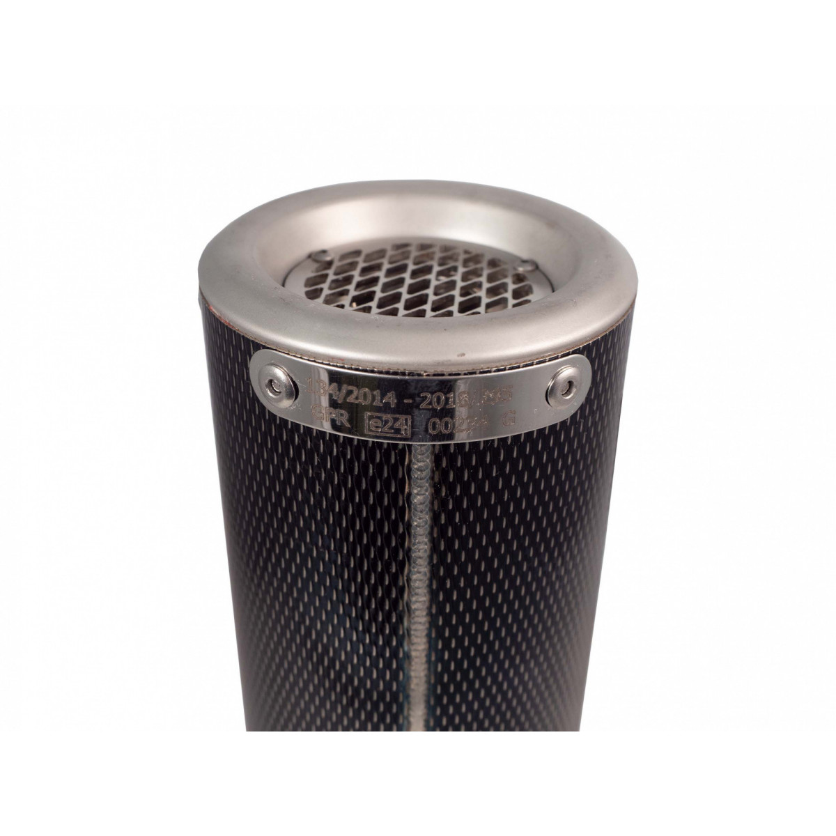 Per l'installazione non sono necessarie modifiche strutturali alla moto per un uso del prodotto in versione omologata. Lo scarico ha un dbkiller rimovibile (limitatore di rumore) per uso agonistico, rimuovere il dbkiller non è SOLO illegale, ma il cliente si assume la responsabilità di utilizzare la moto come solo sui circuiti, senza borse, senza frecce e porta targa o altro parti che entrerebbero in conflitto con il diverso angolo del gas a seguito della trasformazione nella versione da corsa. L'abuso di questa situazione sulla strada comporterà la perdita della garanzia del prodotto e qualsiasi richiesta di rimborso sarà respinta. Terminale Omologato per uso stradale della serie M3 POPPY Impact Zero , sviluppato grazie alle vittorie nel Mondiale Moto3, realizzato in acciaio inox color carbon look avente estrema resistenza alle vibrazioni, forma tonda di diametro 100mm, fornito con griglia racing removibile, fondelli ricavati da lavorazione Cnc. Collettore e Catalizzatore : il kit include il collettore specifico in cui è montato il Catalizzatore,si installa senza tagliare o apportare modifiche,sono incluse flange,boccole,staffe e viteria ove nececcario.
