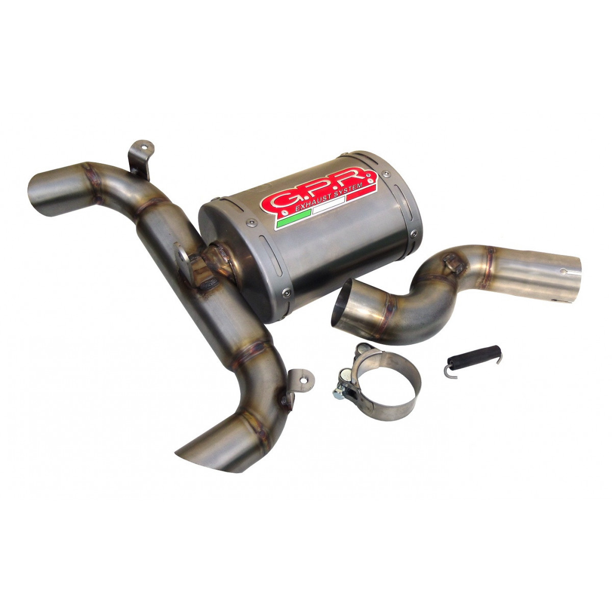 Per l'installazione non sono necessarie modifiche strutturali alla moto per un uso del prodotto in versione omologata. Lo scarico ha un dbkiller rimovibile (limitatore di rumore) per uso agonistico, rimuovere il dbkiller non è SOLO illegale, ma il cliente si assume la responsabilità di utilizzare la moto come solo sui circuiti, senza borse, senza frecce e porta targa o altro parti che entrerebbero in conflitto con il diverso angolo del gas a seguito della trasformazione nella versione da corsa. L'abuso di questa situazione sulla strada comporterà la perdita della garanzia del prodotto e qualsiasi richiesta di rimborso sarà respinta. Terminale serie GHOST, corpo in alluminio, Raccordo in acciaio inox con doppia uscita a corna saldate a TIG, questo scarico ha la caratteristica di rimanere non visibile, come loriginale, si monta allinterno delle plastiche originali. Raccordo ed accessori per il montaggio: questo kit include il Raccordo e/o semicollettore specifico e relativo kit di staffe ed accessori,che permettono un'installazione senza modifiche strutturali