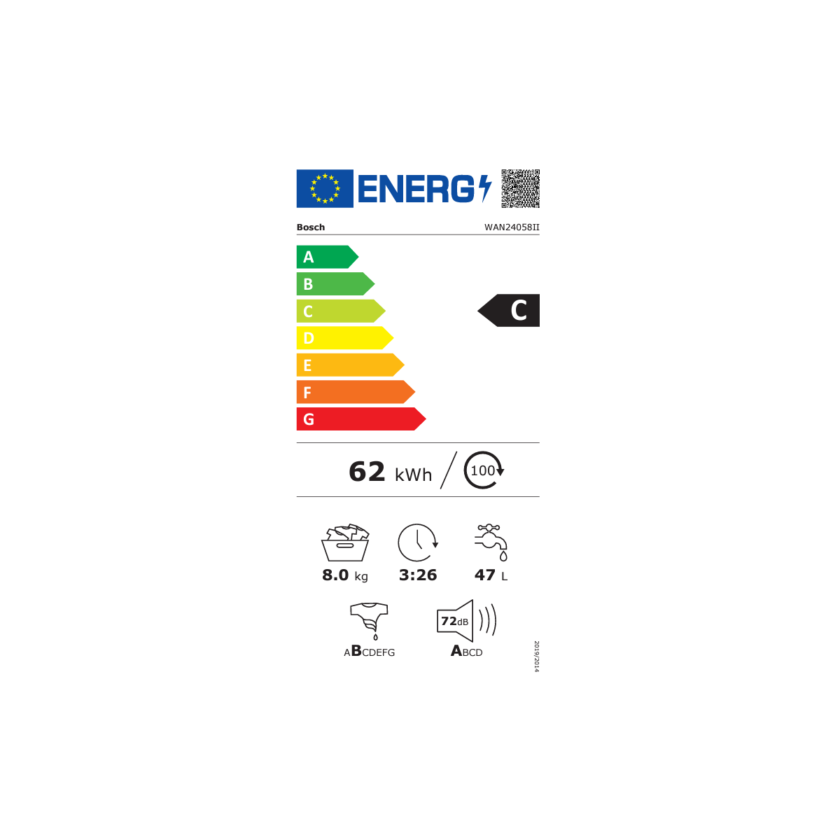 Bosch WAN24058II - Lavatrice a Carica Frontale, Serie 4, Higiene Plus, 8 Kg, 1200 Giri, Inverter, Classe C