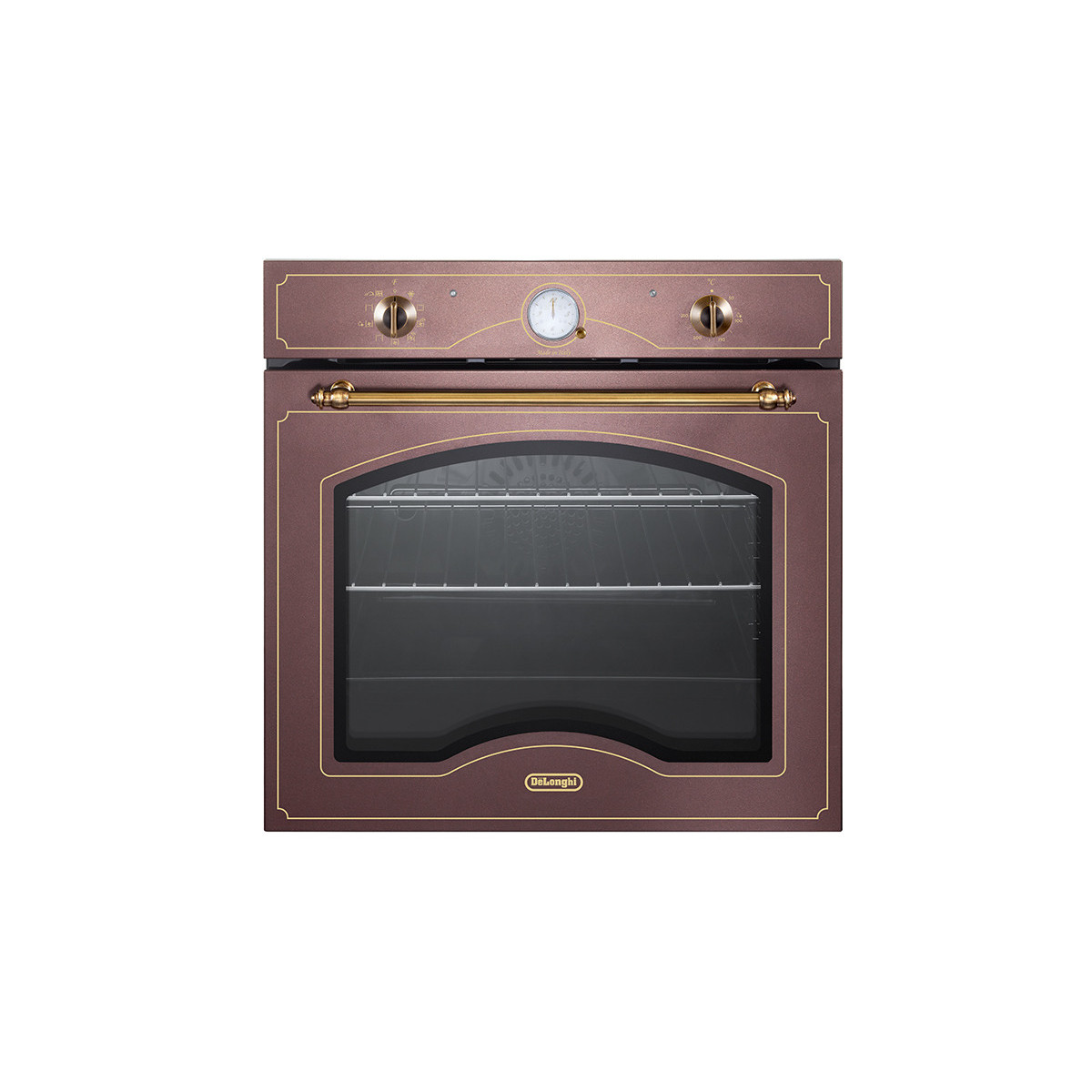 De’Longhi CM 9L RO. Dimensione del forno: Media, Tipo di forno: Forno elettrico, Capacità interna forno totale: 74 L. Posizionamento dell'apparecchio: Da incasso, Colore del prodotto: Rame, Tipo di controllo: Manopola. Tipo di timer: Meccanico, Modalità di impostazione del timer: Tempo di fine cottura, Timer. Classe efficienza energetica: A, Consumo energetico (convenzionale): 0,86 kWh, Consumo energetico (convezione forzata): 0,82 kWh. Quantità lampade: 1 lampada(e), Tipo di lampada: Alogena