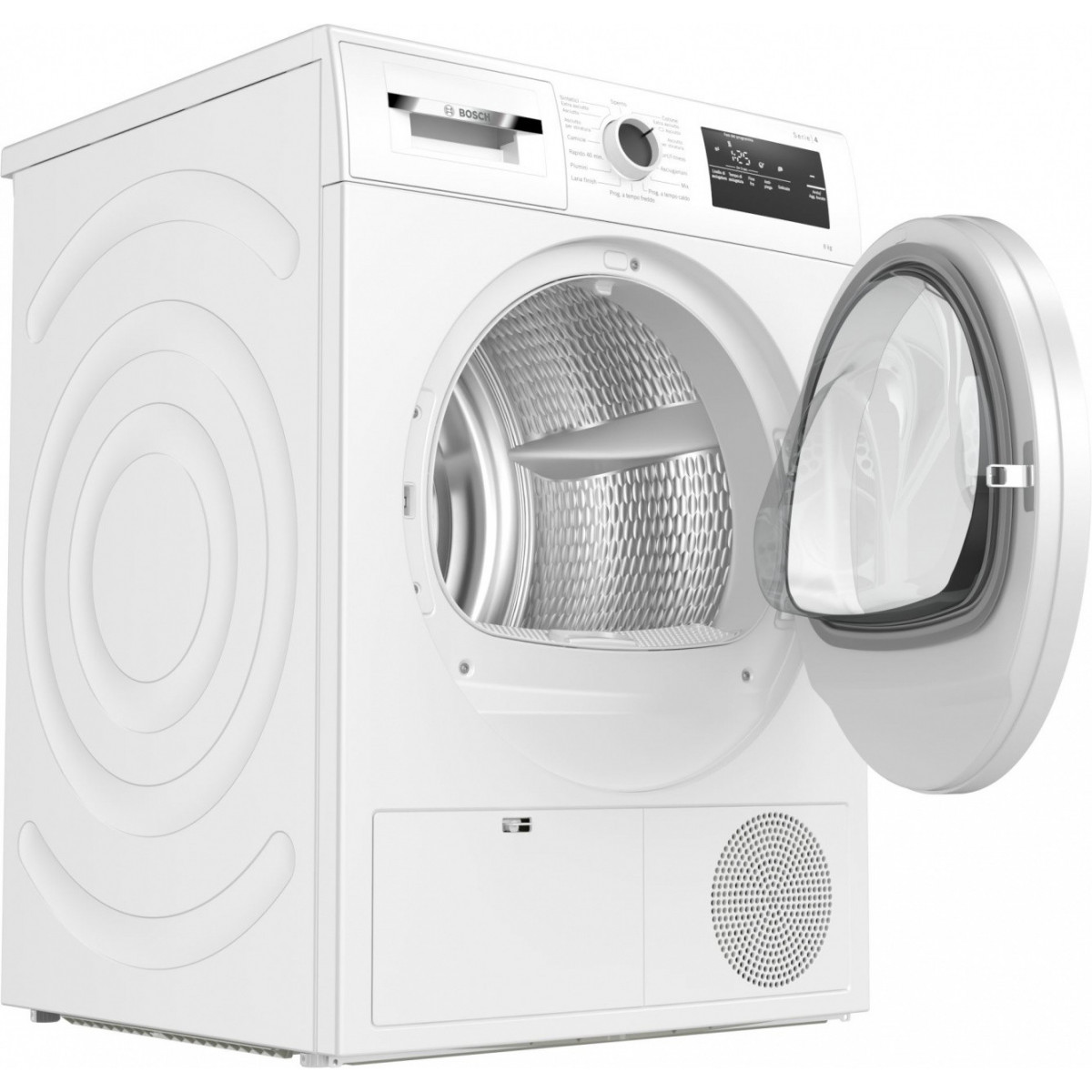 Bosch Serie 4 WTH85V08II. Posizionamento dell'apparecchio: Libera installazione, Tipo di carica: Caricamento frontale, Sistema di asciugatura: Pompa di calore. Capacità cestello: 8 kg, Classe efficacia di asciugatura: B, Programmi di asciugatura: Sintetico, Delicati/Seta, Mix, Piumino/piumone, Asciugamano, Camicia/maglietta, Cotone, Lana, Sport. Partenza ritardata: 24 h, Regolazione piedini: 1,5 cm. Classe efficienza energetica: A++, Consumo energetico: 1,87 kWh, Consumo energetico annuo: 236 kWh. Profondità: 613 mm, Larghezza: 598 mm, Altezza: 842 mm