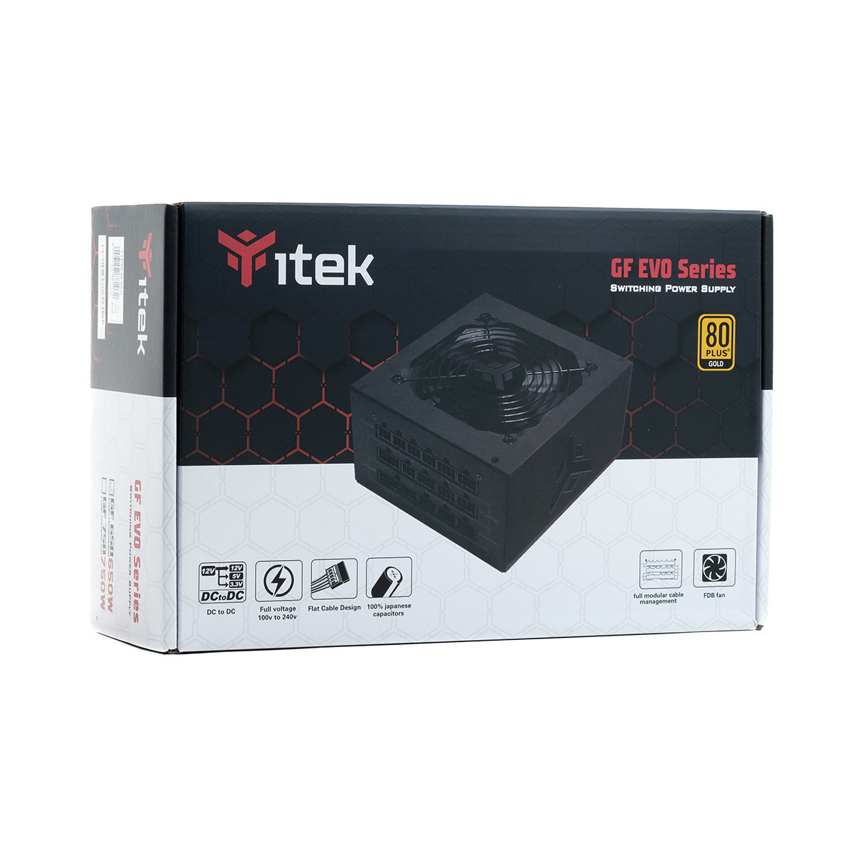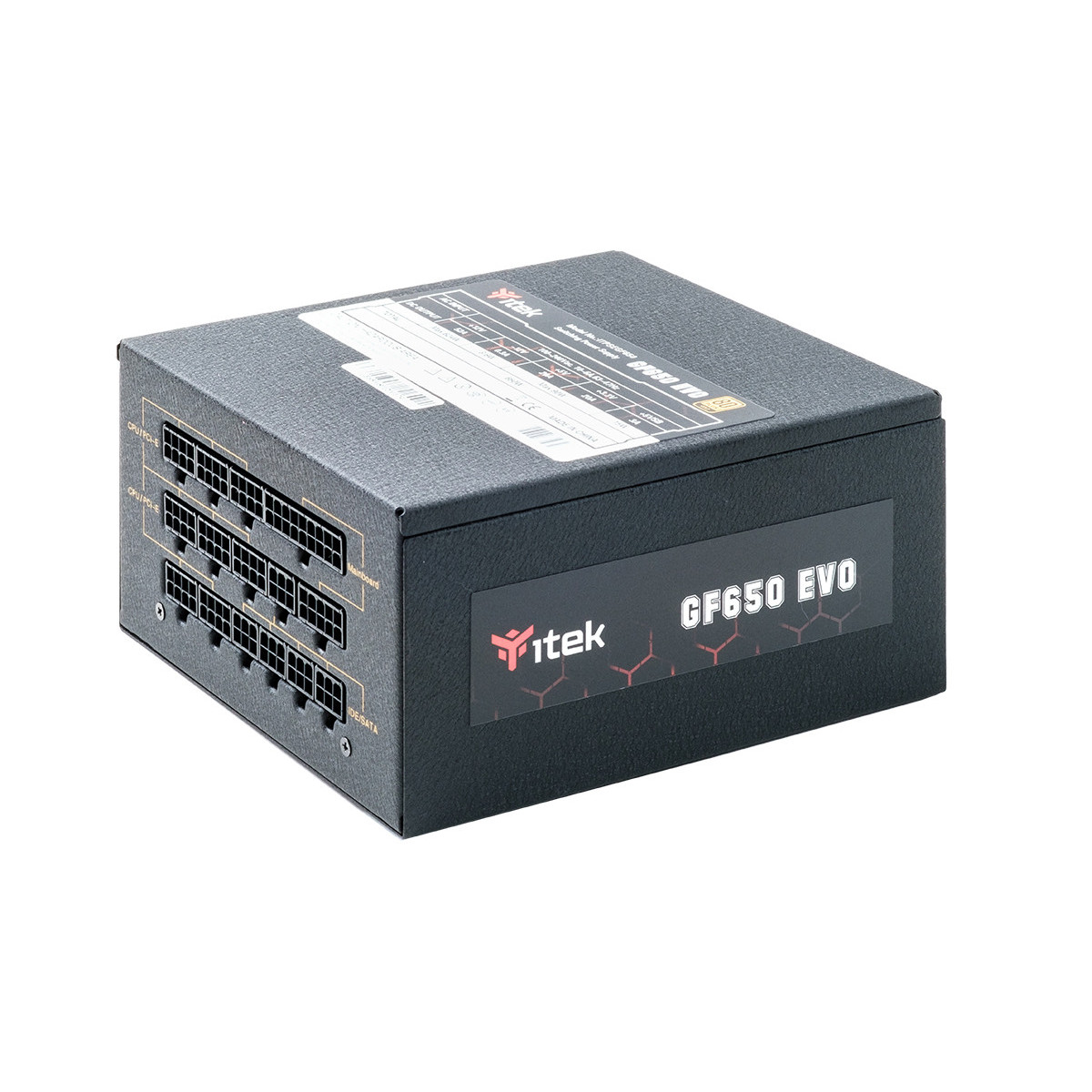 Gli alimentatori della serie GF sono il TOP di gamma di itek. Disponibili con potenze da 650W, 750W e 850W e un efficienza del 90% al 50% di carico, la quale ha permesso di ottenere la prestigiosa certificazione 80Plus® Gold. Questi PSU, con regolazione DC to DC, completamente modulari “free plug”, sono dotati di PFC attivo e dispongono di comodi cavi flat, di una ventola silenziosa da 120mm FDB “Fluid Dynamic Bearing” con controllo termico, di chassis con effetto “ruvido” anti graffio e di condensatori Giapponesi 105c. Tutti dettagli che rendono questi alimentatori estremamente affidabili, silenziosi e di ottima qualità.