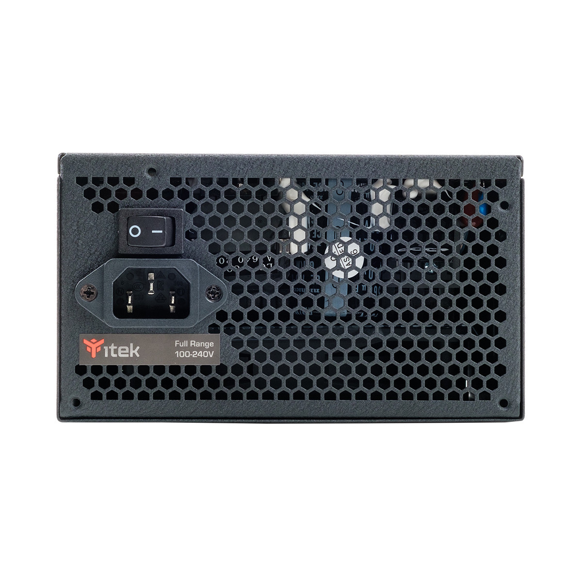 itek GF650. Potenza totale: 650 W, Tensione di ingresso AC: 100 - 240 V, Tipo di correttore del fattore di potenza (PFC): Attivo. Connettore scheda madre: 24-pin ATX, Tipo di cablaggio: Modulare. Utilizzo: PC, Fattore di forma dell'unità di alimentazione (PSU): ATX, Certificazione 80 PLUS: 80 PLUS Gold. Colore del prodotto: Nero, Tipo di raffreddamento: Attivo, Diametro del ventilatore: 12 cm. Larghezza: 160 mm, Profondità: 150 mm, Altezza: 86 mm