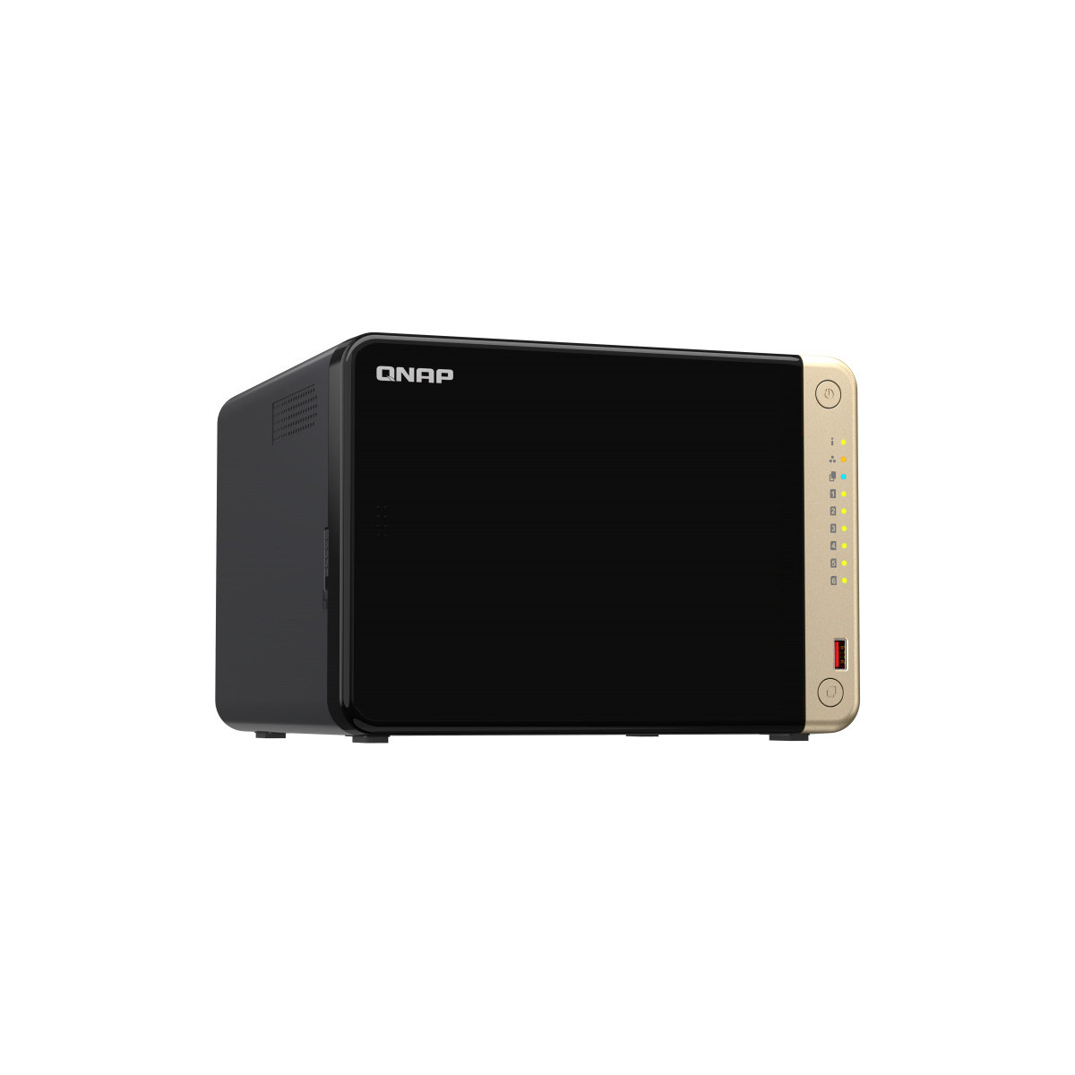 QNAP TS-664-4G. Tipi di unità di archiviazione supportate: HDD & SSD, Interfacce dell'unità di archiviazione supportate: Serial ATA III, Dimensioni dei dispositivi di archivio supportati: 2.5,3.5,M.2. Famiglia processore: Intel® Celeron®, Produttore processore: Intel, Frequenza del processore turbo massima: 2,9 GHz. RAM installata: 4 GB, Tipo di RAM: DDR4, Massima RAM supportata: 16 GB. Velocità trasferimento Ethernet LAN: 100,1000,2500 Mbit/s. Tipo di case: Tower, Tipo di raffreddamento: Attivo, Colore del prodotto: Nero
