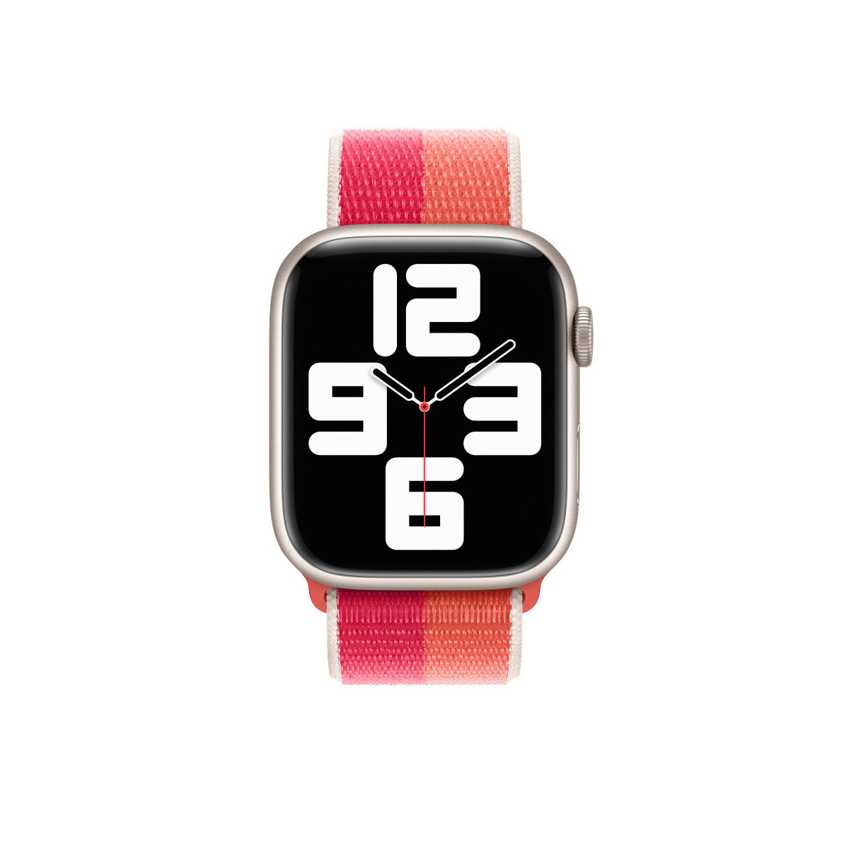 Apple 45mm Nectarine/Peony Sport Loop. Tipo di prodotto: Band, Tipo di dispositivo compatibile: Orologio intelligente, Colore del prodotto: Arancione, Rosso, Bianco. Larghezza: 45 mm. Quantità per pacco: 1 pz