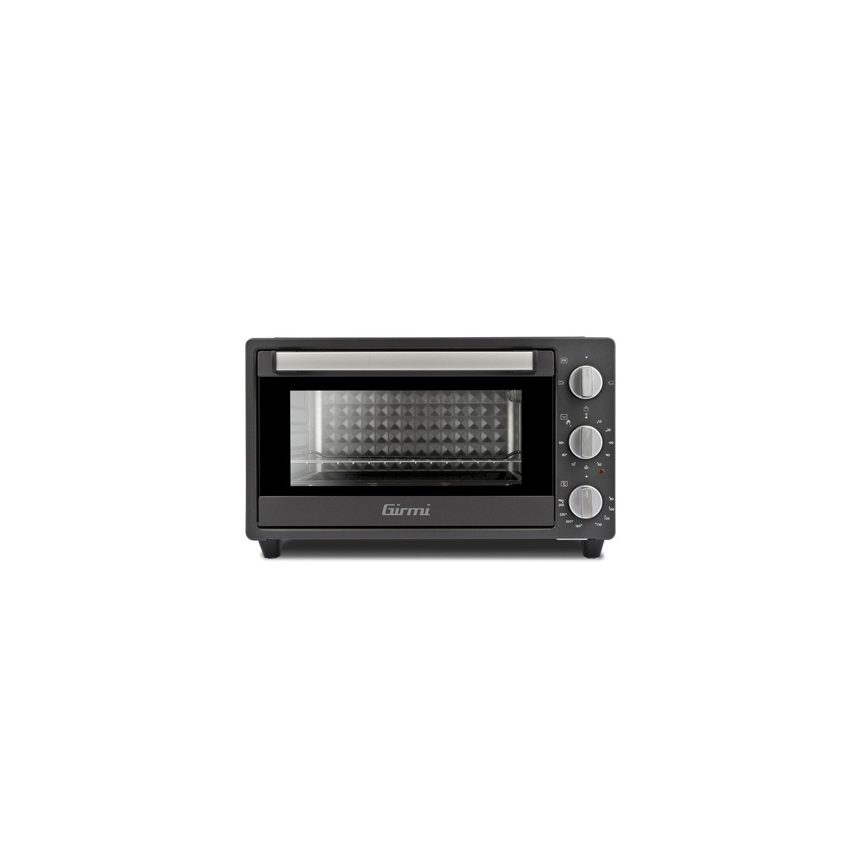 Girmi Grancotto 21. Capacità netta del forno: 21 L, Colore del prodotto: Grigio, Posizionamento dell'apparecchio: Libera installazione. Potenza del forno: 1500 W, Tensione di ingresso AC: 230 V, Frequenza di ingresso AC: 50/60 Hz. Larghezza: 440 mm, Profondità: 380 mm, Altezza: 265 mm