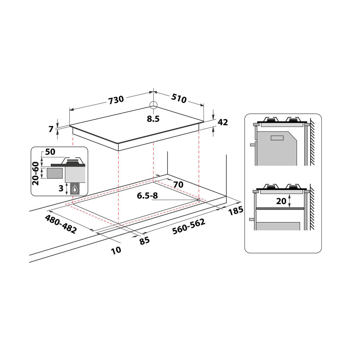 | Dimensione della larghezza del piano cottura | 73 cm |