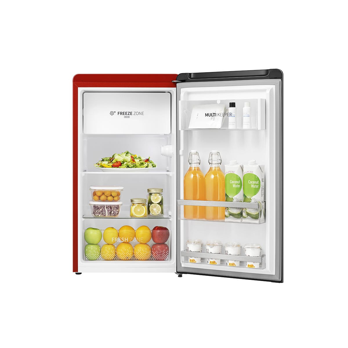 Hisense RR106D4CRF. Posizionamento dell'apparecchio: Libera installazione, Colore del prodotto: Rosso, Cerniera porta: Destra. Capacità netta totale: 82 L, Classe climatica: N-ST, Classe emissione rumore: C. Capacità netta frigorifero: 75 L, Tipo di lampada: LED. Posizione del congelatore: Posto in alto, Capacità netta congelatore: 7 L, Autonomia senza energia elettrica: 5 h. Classe efficienza energetica: F, Consumo energetico annuo: 156 kWh, Scala di efficienza energetica: Da A a G