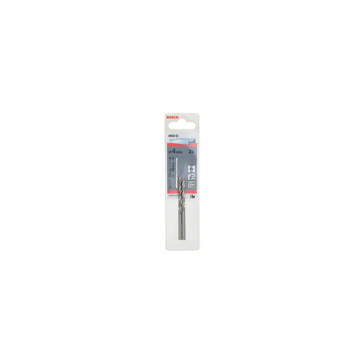 Bosch 2 608 585 916. Uso appropriato: Trapano, Tipo di punta per trapano: Punta per trapano elicoidale, Diamtro della punta del trapano: 4 mm. Numero di punte per trapano: 2 pz