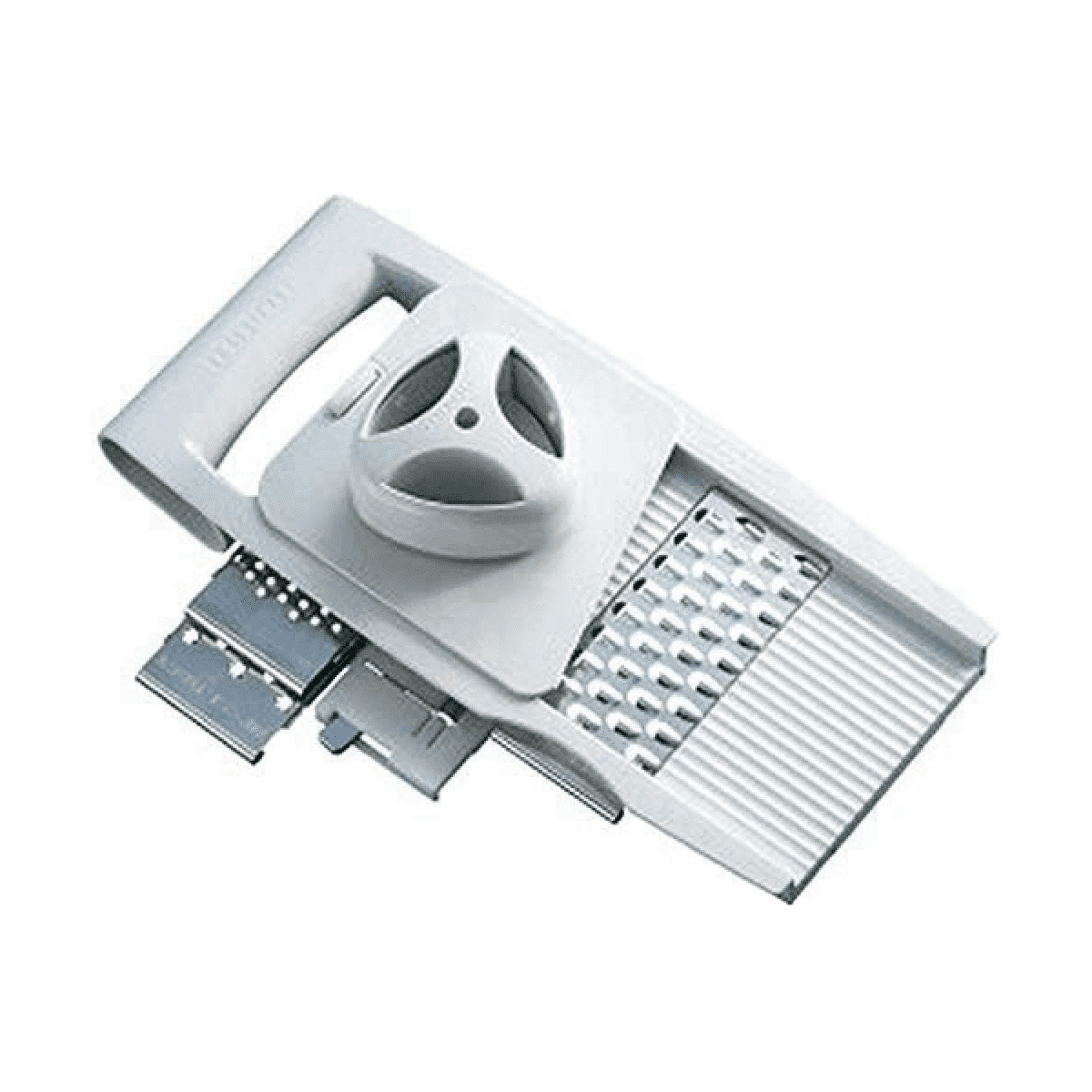 Caratteristiche : Affettaverdure con telaio in resina antiurto 4 lame intercambiabili in acciaio inossidabile Completo di salvadita Misura: 29x12 cm