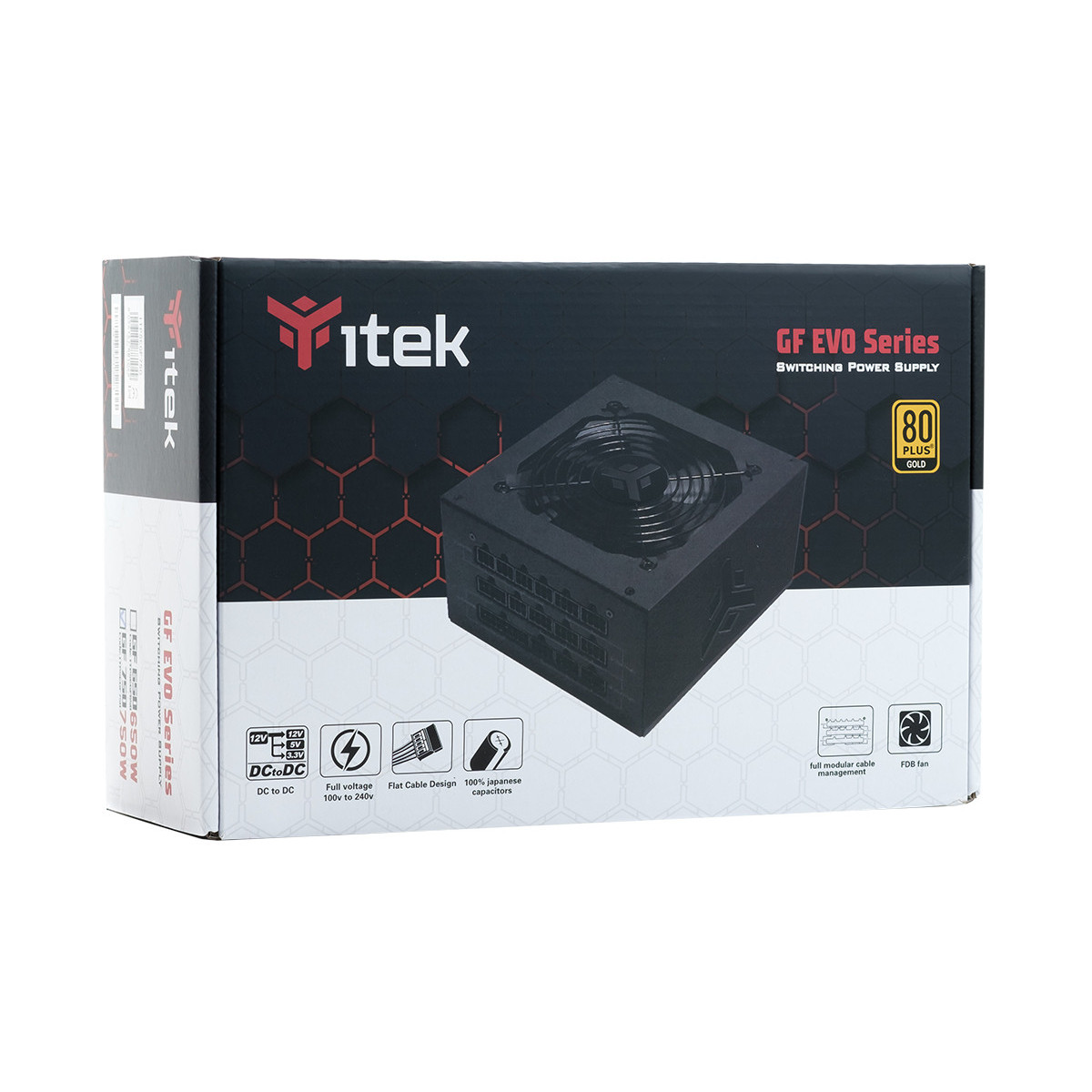 Gli alimentatori della serie GF sono il TOP di gamma di itek. Disponibili con potenze da 650W, 750W e 850W e un efficienza del 90% al 50% di carico, la quale ha permesso di ottenere la prestigiosa certificazione 80Plus® Gold. Questi PSU, con regolazione DC to DC, completamente modulari “free plug”, sono dotati di PFC attivo e dispongono di comodi cavi flat, di una ventola silenziosa da 120mm FDB “Fluid Dynamic Bearing” con controllo termico, di chassis con effetto “ruvido” anti graffio e di condensatori Giapponesi 105c. Tutti dettagli che rendono questi alimentatori estremamente affidabili, silenziosi e di ottima qualità.