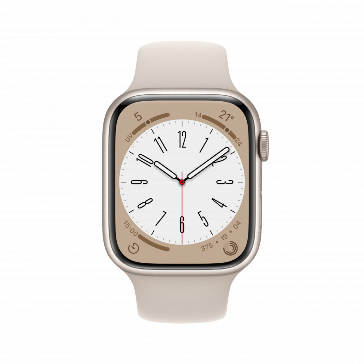 Apple Watch Series 8 GPS 41mm Cassa in Alluminio color Galassia con Cinturino Sport Band Galassia - Regular. Tecnologia display: OLED, Risoluzione del display: 352 x 430 Pixel, Touch screen. Memoria flash: 32 GB. Wi-Fi. GPS (satellitare). Peso: 32 g. Impermeabile fino a: 50 m, Colore cinturino: Beige. Sistema operativo incluso: watchOS 9