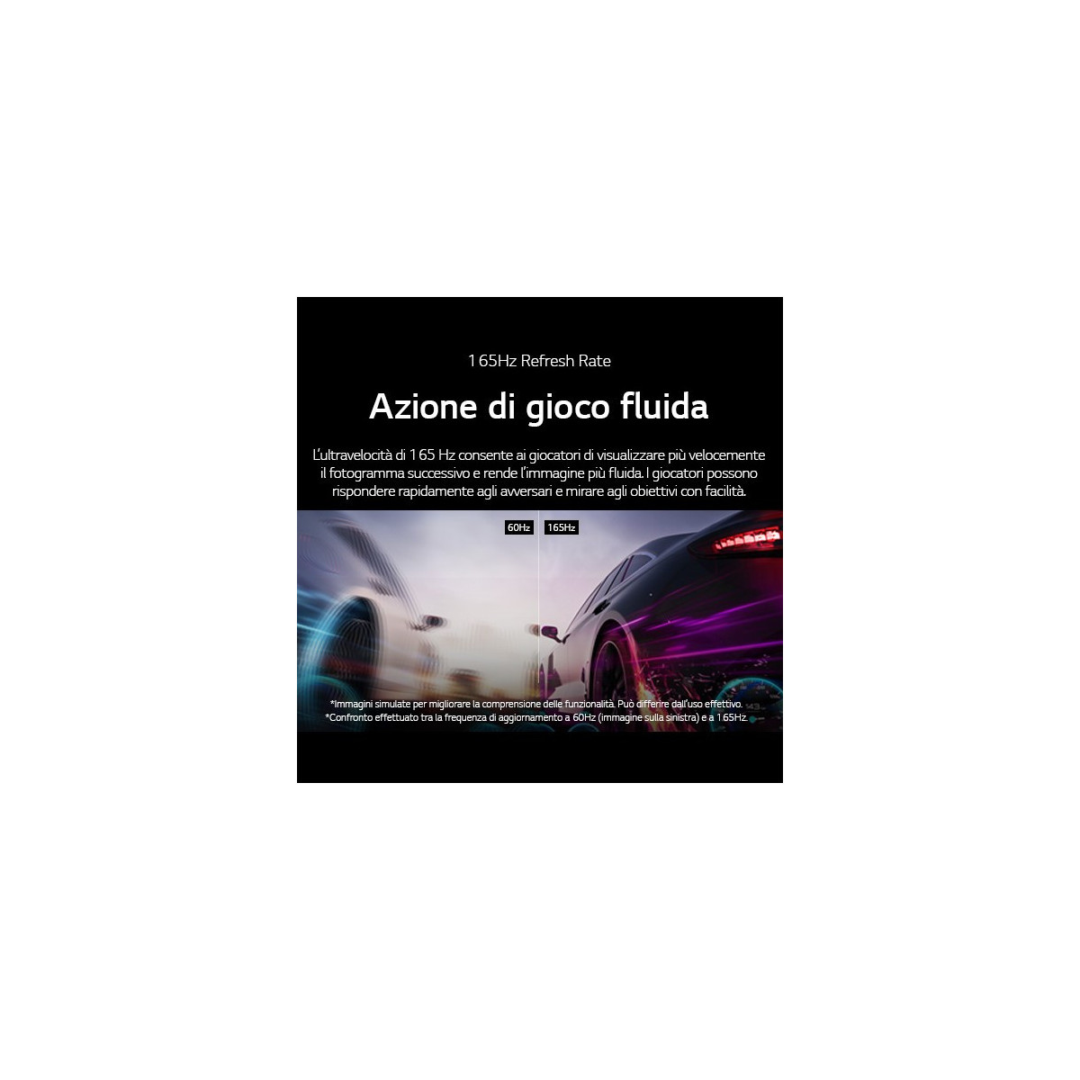 Con un refresh rate di 165Hz, il monitor gaming consente di visualizzare più velocemente il fotogramma successivo e di godere di sessioni di gioco incredibilmente fluide. Puoi rispondere rapidamente agli avversari e mirare agli obiettivi con facilità.