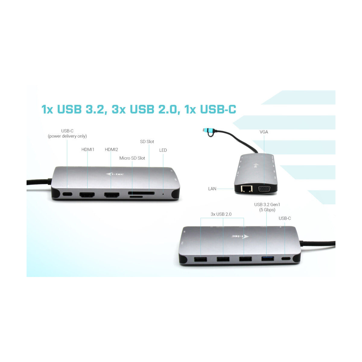 i-tec USB 3.0 USB-C/Thunderbolt 3x Display Metal Nano Dock with LAN + Power Delivery 100 W