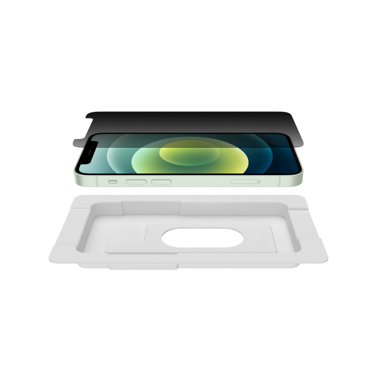 Belkin SCREENFORCE. Compatibilità marca: Apple, Compatibilità: iPhone 12 Mini, Funzioni di protezione: Antibatterico, Antipolvere, Resistente agli urti, Antigraffio. Funzione filtraggio privacy, Materiali: Vetro temperato, Colore del prodotto: Nero. Quantità per pacco: 1 pz