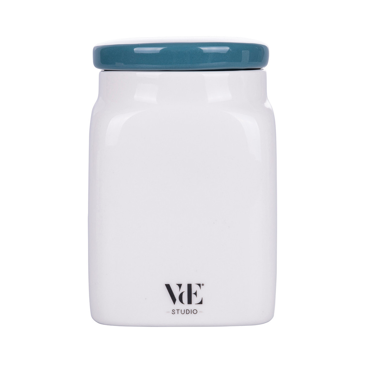 Colore: bianco con scritte acquamarina e beige, coperchio ottanio, finitura lucida