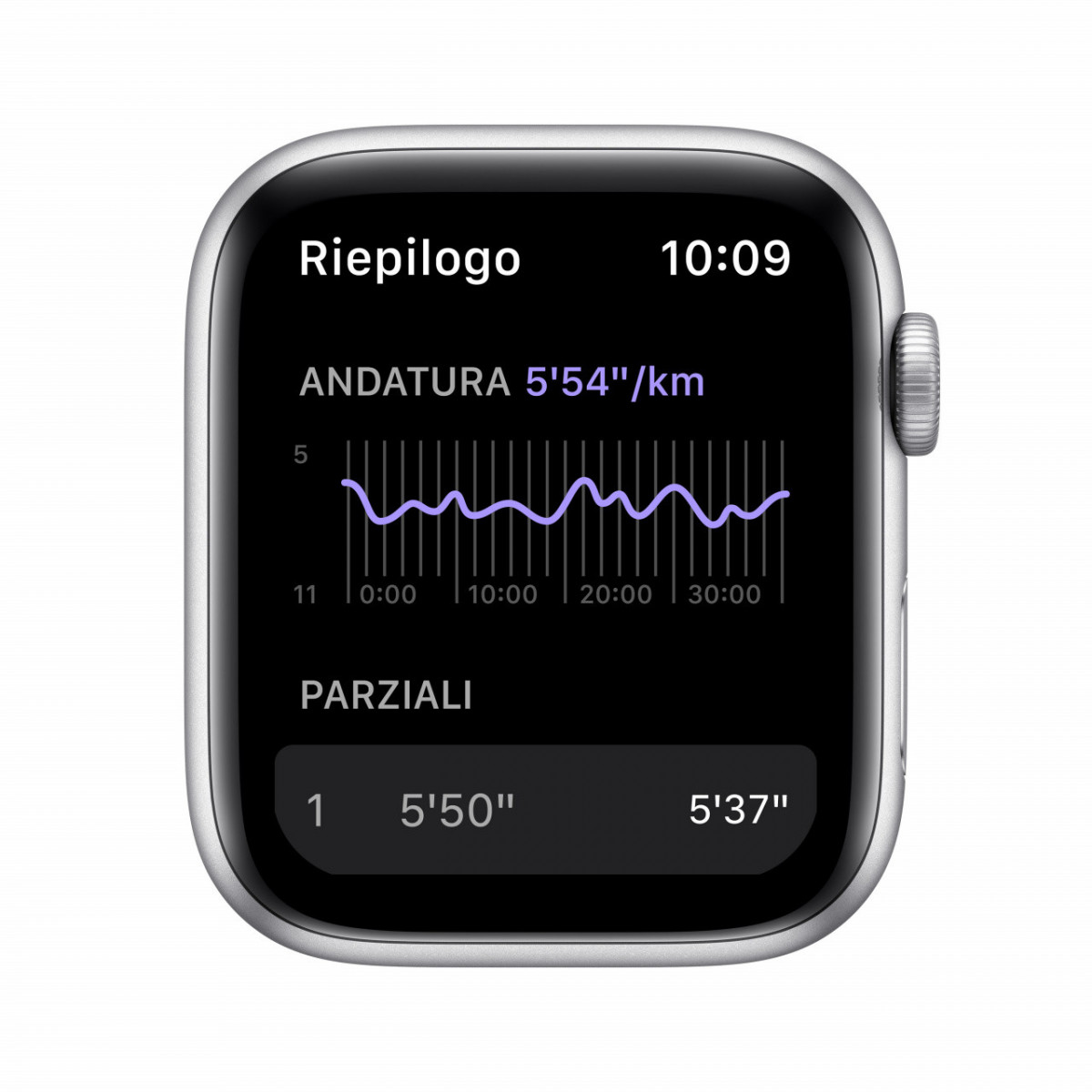 Apple Watch Nike SE GPS, 44mm Cassa in Alluminio color Argento con Cinturino Sport Puro Platino/Nero